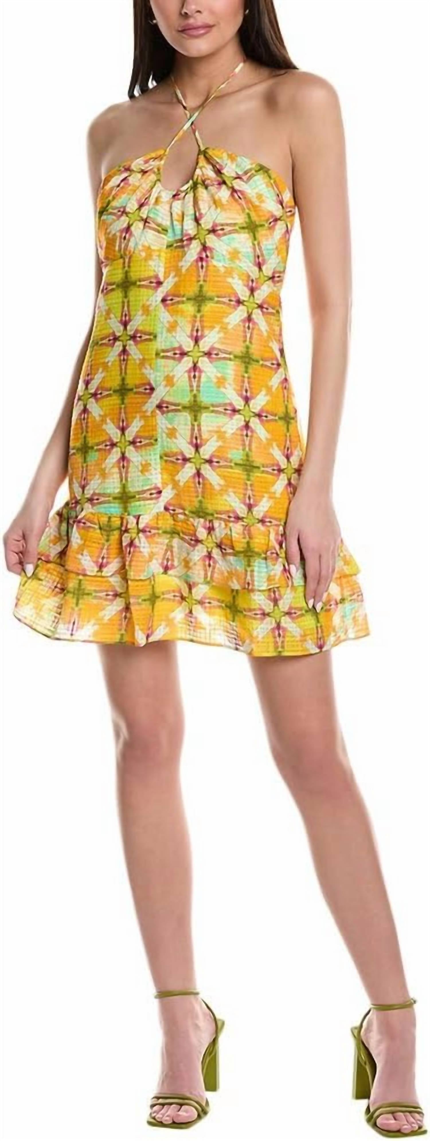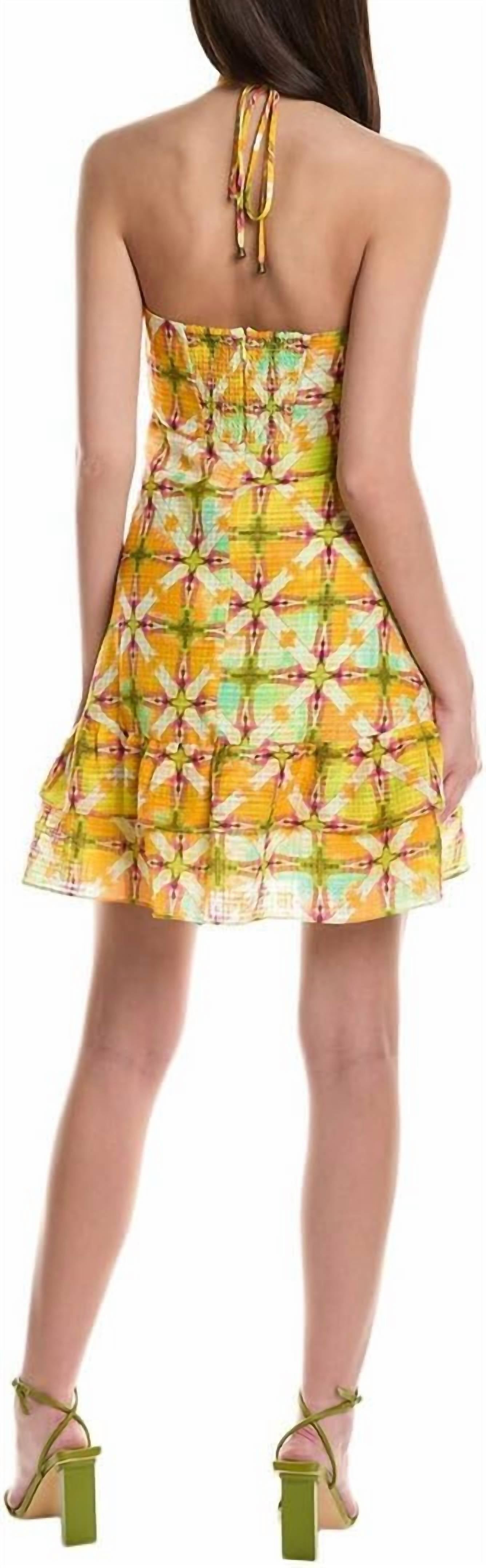 Introducing the Alisa Dress by Marie Oliver, a chic addition in a vibrant Papaya hue crafted for sophisticated summer style. This sleeveless mini dress features a self-tie halter neck, a smocked back for added comfort, and a playful tiered hem. 56% Viscose, 44% Linen, with a center back zipper and hook-and-eye closure. Dry clean only. Approximately 32 inches from shoulder to hem, this dress is made in China.