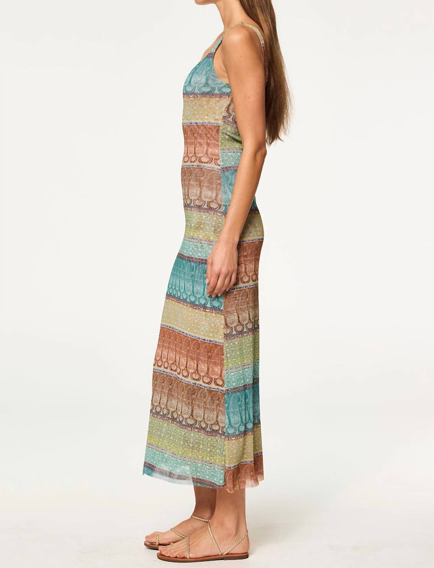 The Khloe Dress is a sleek maxi crafted from double-lined mesh in a vibrant Paisley Ombré print. Designed with slim straps and a flattering scoop neckline, this bodycon silhouette contours the figure while offering comfortable stretch. Made from 97% polyester and 3% spandex, it’s the perfect day-to-night statement piece.