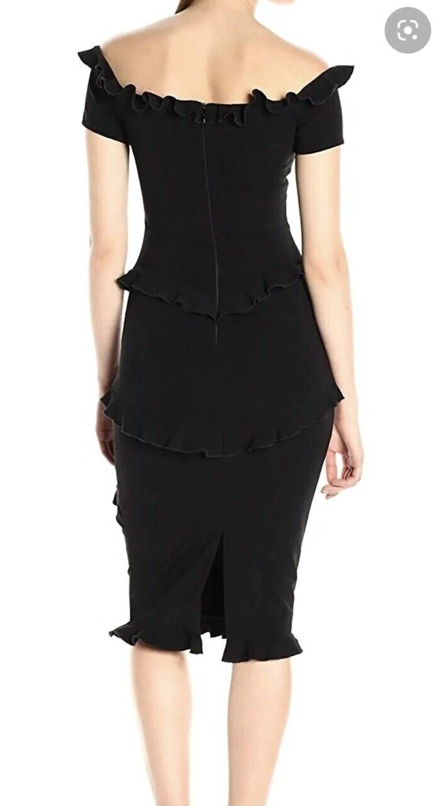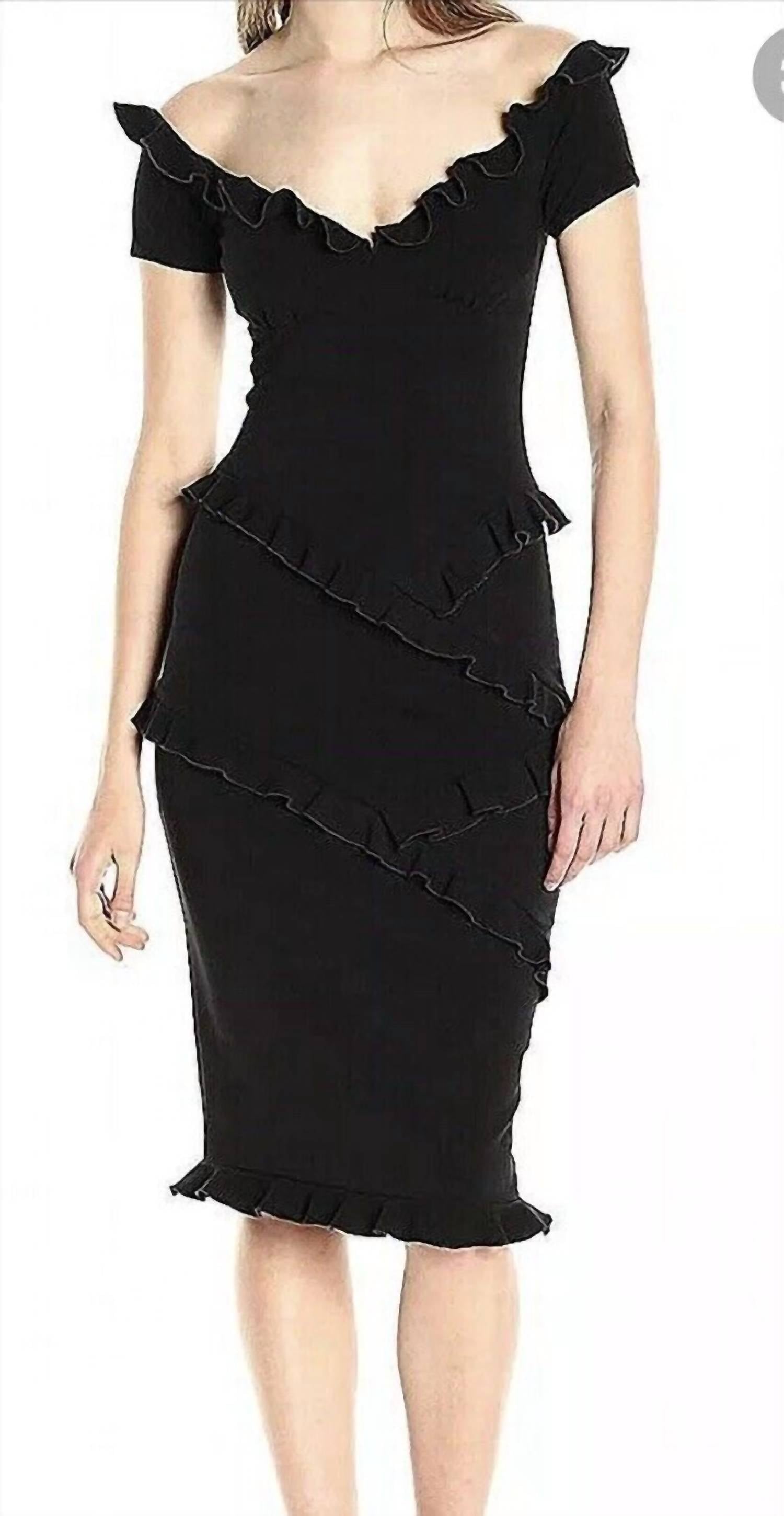 A midi dress so versatile, your options for wearing it are endless.Nicole Miller Audrey Ruffled Demi Sheath off shoulders bodice stretch lined cocktail