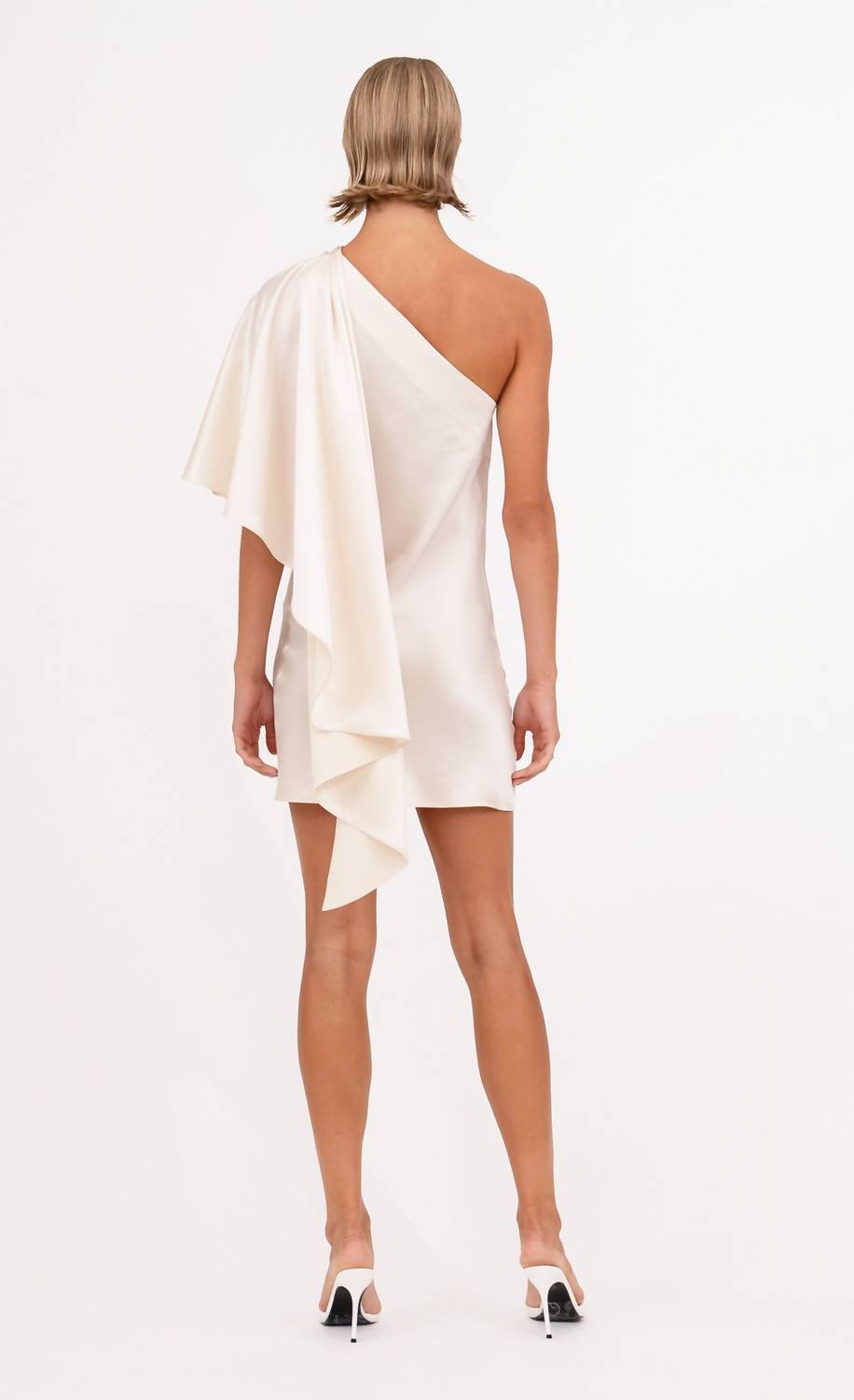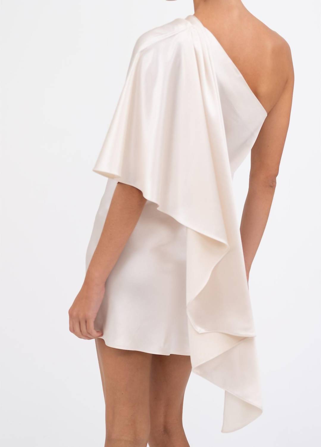 The kind of easy and flattering dress you'll be reaching for all season long. Step into elegance with the Malia Mini Dress by Nonchalant Label, a sophisticated piece perfect for evening events. This champagne dress features a stunning one-shoulder neckline with short sleeves, and is crafted from a luxurious acetate fabric. A ruffled sash adds a touch of drama to its shift silhouette, embodying the quiet luxury trend. Enjoy the convenience of its pull-on closure for effortless wear.