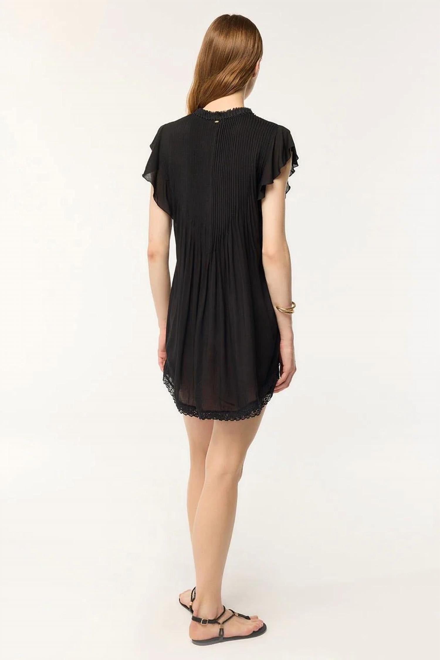 The kind of easy and flattering dress you'll be reaching for all season long. Unveil effortless elegance with the Sasha Mini Dress by Poupette St Barth, a beach-ready classic in chic black. Designed with cap sleeves and a vibrant fringed collar, this dress offers a textured, monochrome look perfect for summer vacations. Crafted from 100% Viscose, it features an adjustable trapeze shape that can be refined with a belt, boasting a delightful lace trim at the hem. Closure: Pull on. Care: Hand wash. Ideal for those seeking a stylish yet relaxed vacation wardrobe.