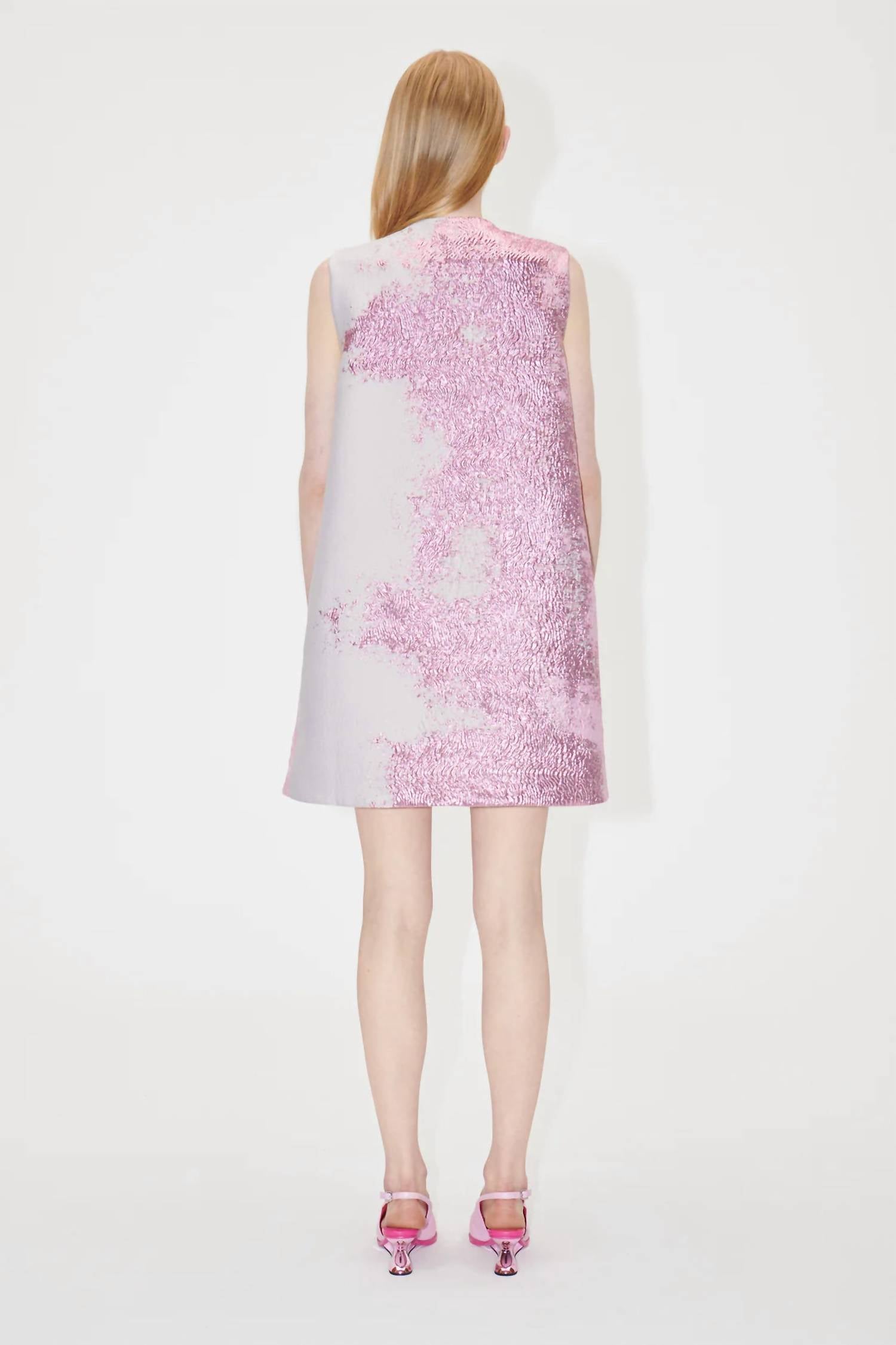 Step out in style with the Tamar Dress by STINE GOYA, an elegant choice in a Wild Rose hue. This sleeveless dress showcases a V-neckline and an A-line mini silhouette, crafted from textured metallic material for a touch of luxury. Featuring convenient side pockets and fully lined with 100% recycled polyester, it offers both comfort and sustainability. Closure: Pull on. Care: Dry clean only. Perfect for evening events, this dress embodies quiet luxury ideal for Valentine's Day and other special occasions.