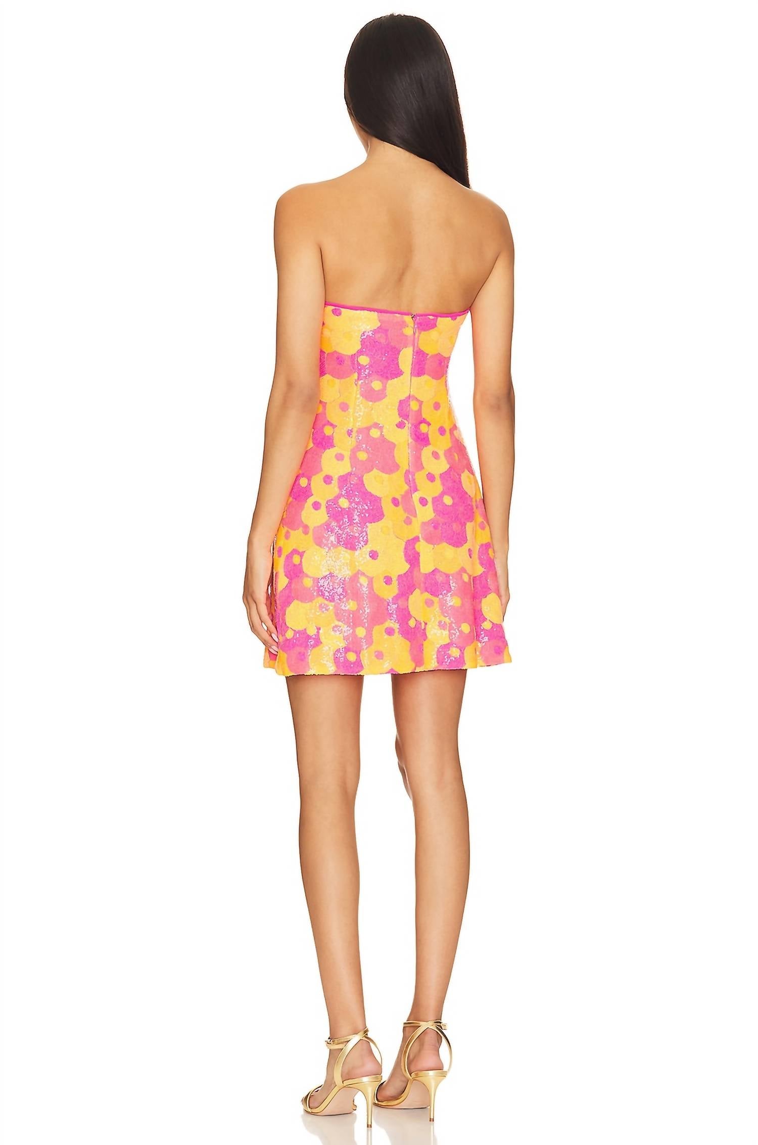 A short and breezy dress for those warmer days. This fully lined dress is crafted from sequin-embellished mesh fabric, offering a glamorous and textured look. It features a hidden back zipper closure for a seamless fit and is made from a comfortable blend of polyester and spandex with a nylon-spandex lining. Hand wash recommended to preserve its delicate details.
