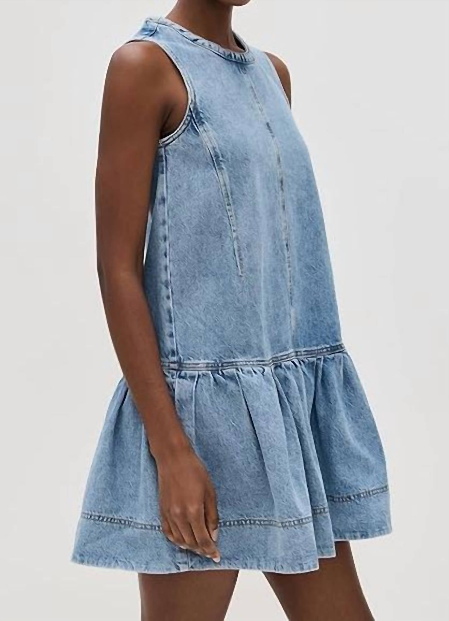 A flattering yet comfortable dress you'll be reaching for season after season. The Cynthia Mini Dress by TANYA TAYLOR showcases a playful, feminine feel with its sleeveless cotton design. This light indigo blue dress features a crew neckline, on-seam pockets, and a flounced tiered skirt, embodying both polish and effortless charm. Crafted with a comfortable pull-on closure, this solid A-line silhouette is ideal for a chic Spring daytime look. Care for this garment by dry cleaning only. 100% Cotton
