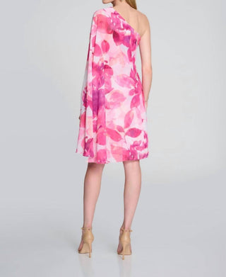 Joseph Ribkoff - Women's Chiffon Floral One Shoulder Cape Dress