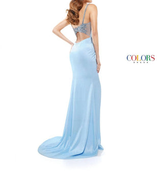 Colors Dress - Sleeveless V-neck Embellished Long Dress