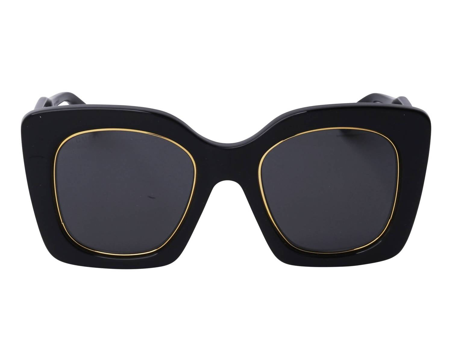Introducing the WOMEN'S GG1151S SUNGLASSES by Gucci, a chic accessory for the modern woman. These full rim cat eye sunglasses feature a sleek shiny solid black acetate frame paired with solid grey lenses. With exceptional UV protection level 3, they are perfect for fashion-savvy individuals. Dimensions include a lens width of 51 mm, a bridge width of 23 mm, and a comfortable temple length of 145 mm.