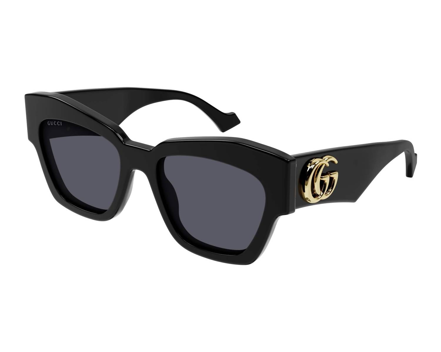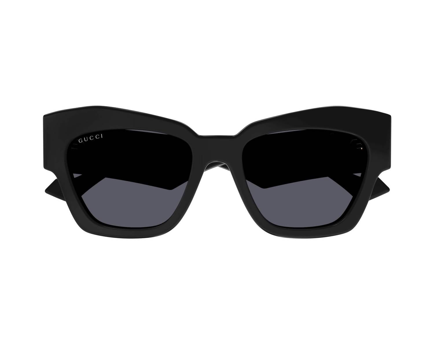 Introducing the Women's GG1422S Sunglasses by Gucci, a luxurious accessory crafted in Italy with meticulous attention to detail. The full rim square frame, made from durable acetate, shines in a sleek shiny solid black, making a timeless fashion statement. Complementing these are solid grey lenses, providing a chic contrast and optimal sun protection. With lens dimensions of 55mm width and 41mm height, a bridge size of 19mm, and temple length of 145mm, these sunglasses ensure a perfect stylish fit for any occasion.