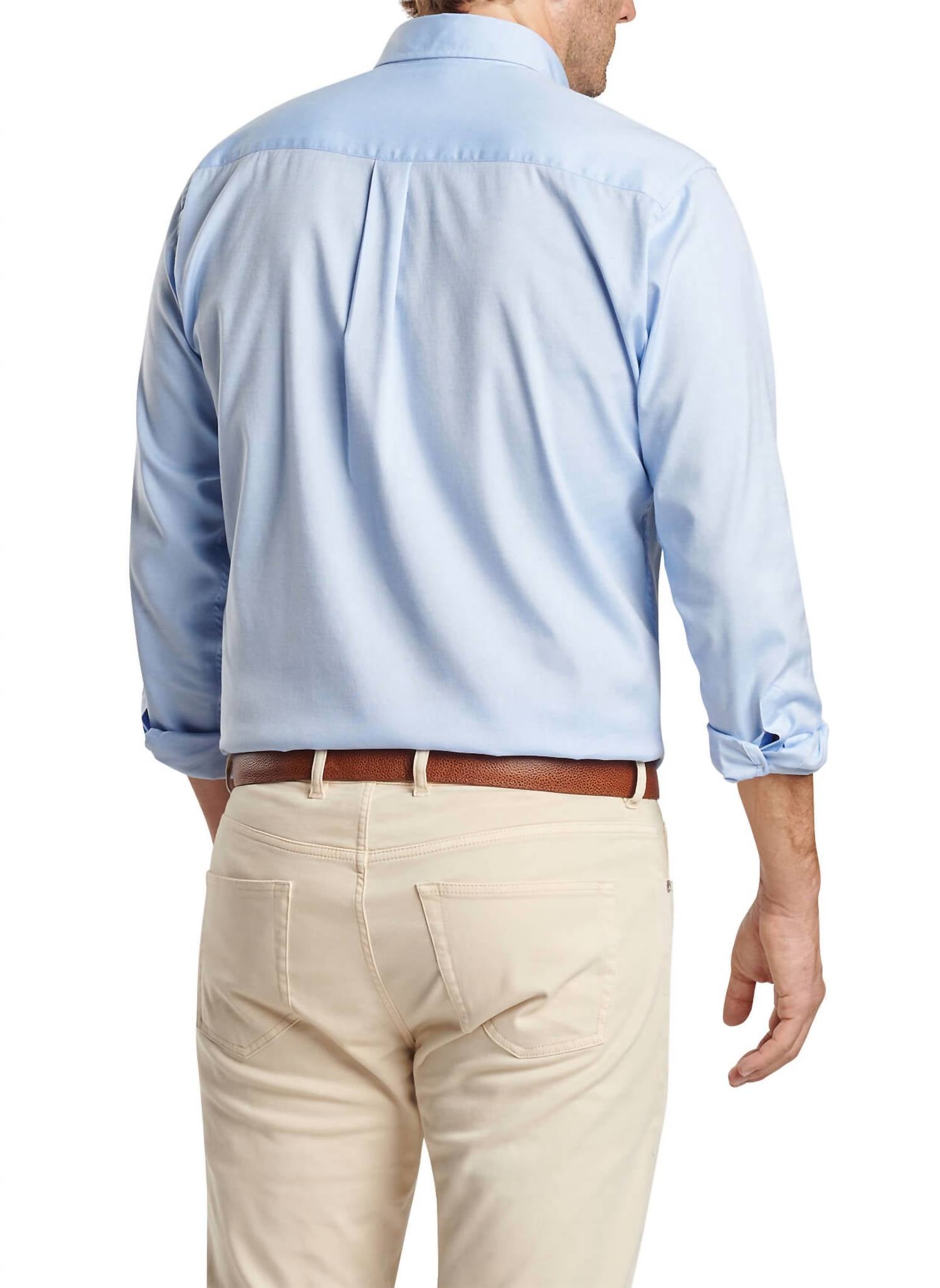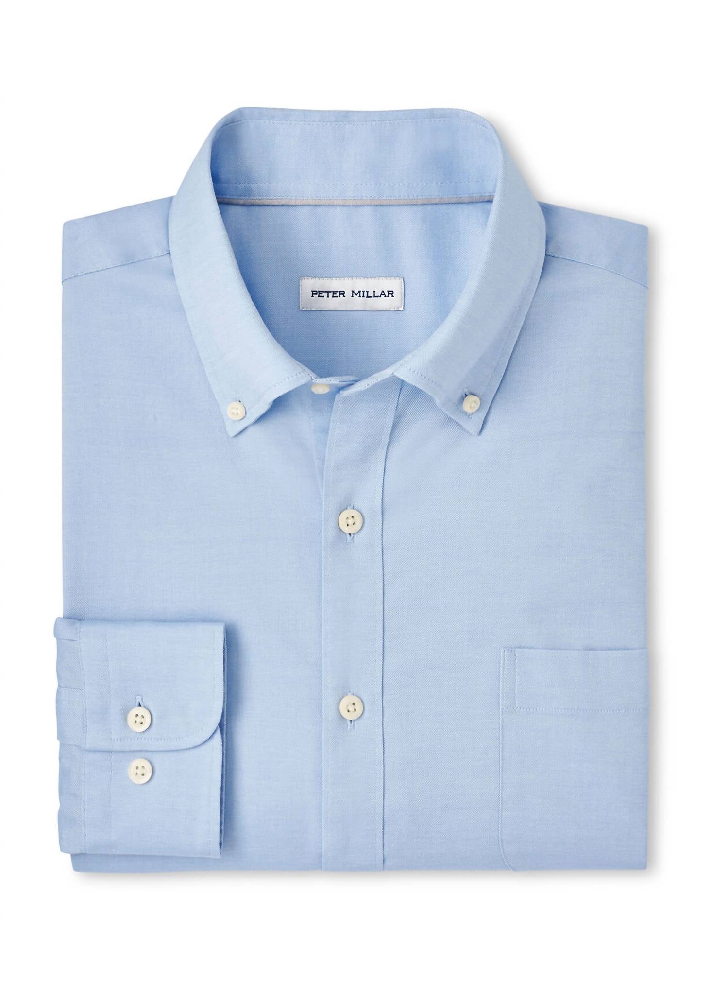 Enhance your wardrobe with the Campbell Crown Pinpoint Cotton-stretch Sport Shirt by Peter Millar, a solid Cottage Blue dress shirt perfect for any occasion. Featuring long sleeves and a classic fit, this shirt is crafted from a durable cotton blend (58% cotton, 19% modal, 12% lyocell, 8% polyester, 3% spandex) that offers stretch, shape retention, and excellent mobility. Closure: Button closure with a collar neckline and convenient pockets. Care: Machine wash cold with like colors and lay flat to dry. Imported.