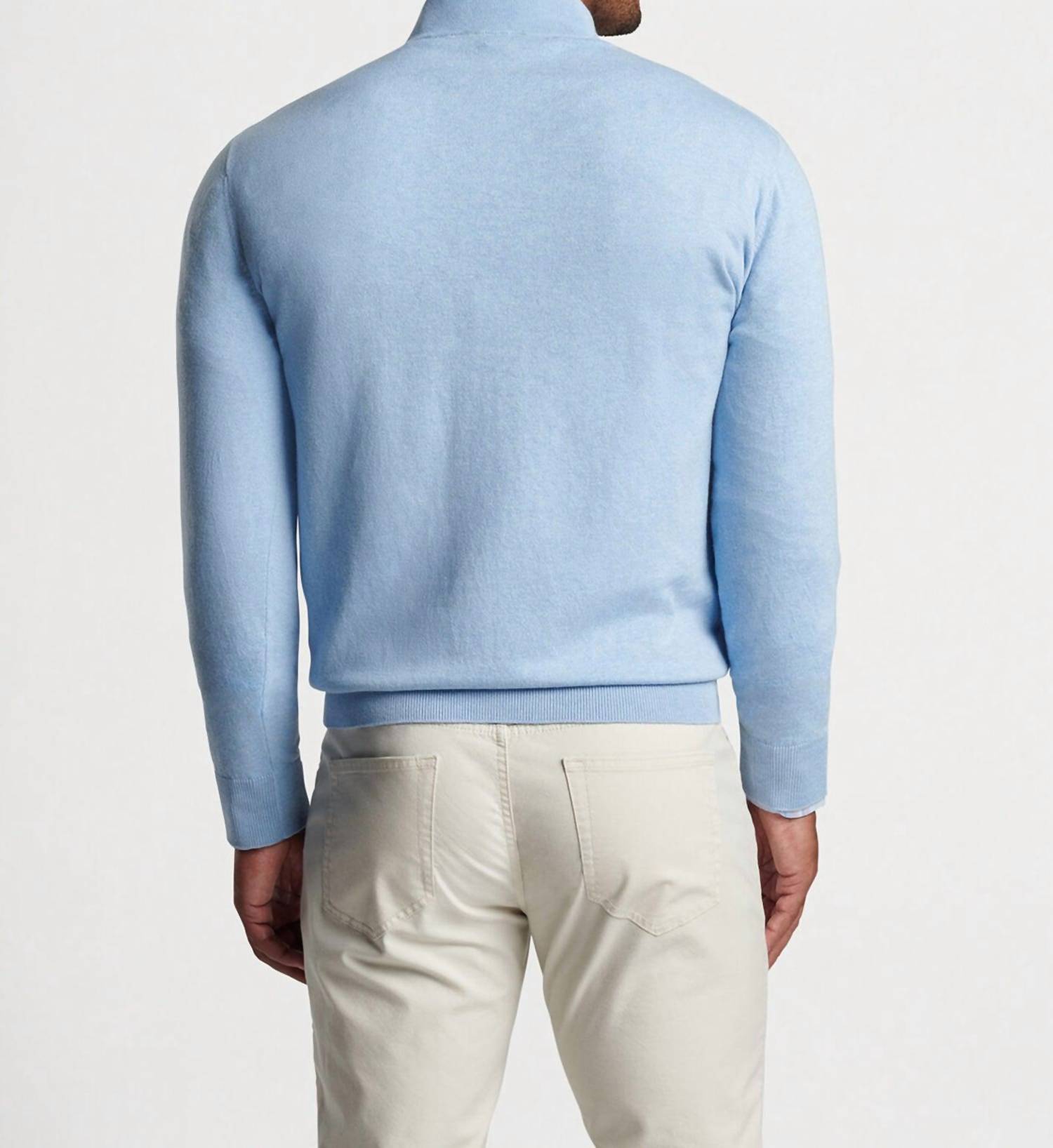 Introducing the Men's Whitaker Quarter-zip Sweater by PETER MILLAR, an artful blend of style and comfort in a serene Cottage Blue hue. This solid-patterned sweater features long sleeves and a sophisticated mockneck, perfect for upgrading your casual wardrobe. Crafted from a cotton-Tencel™-silk blend, it offers the cozy feel of a favorite sweatshirt with ribbed cuffs and a bottom hem. Closure: Zip closure. Care: Machine wash and lay flat to dry.
