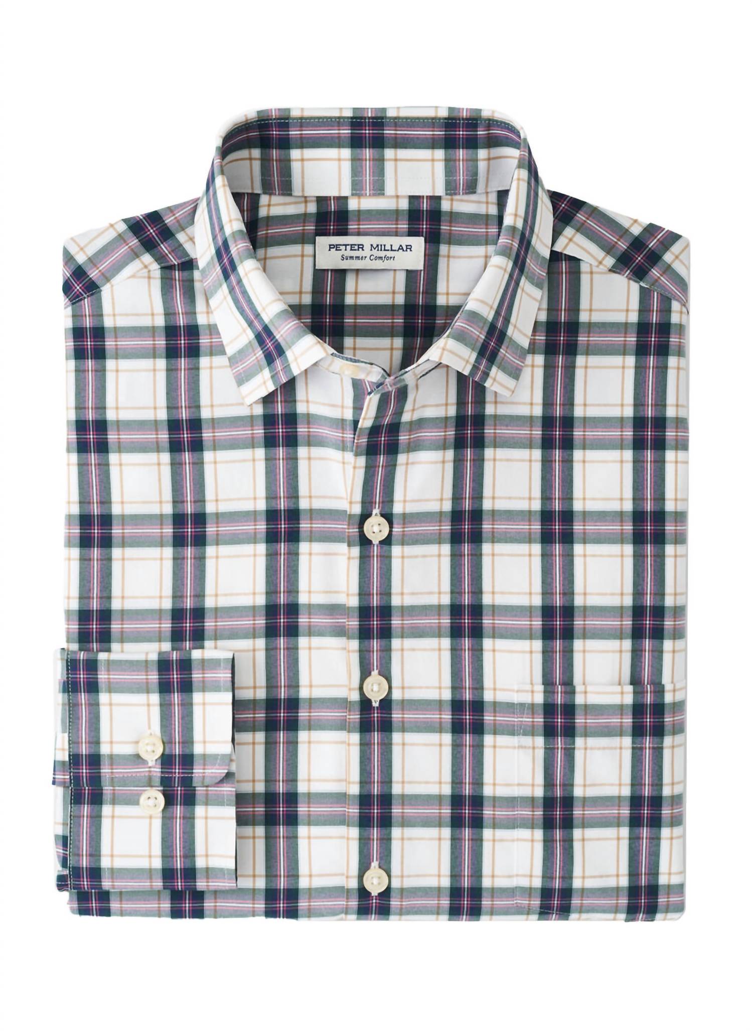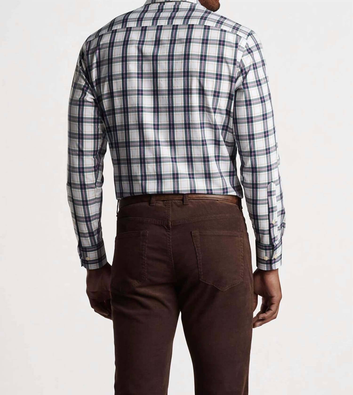 Elevate your golf wardrobe with the Randall Performance Poplin Sport Shirt by Peter Millar, a brand synonymous with stylish functionality on the course. This men's casual button-down in white features long sleeves and a classic plaid pattern, enhanced by a spread collar and French placket. Crafted from 100% polyester, it offers two-way stretch, moisture-wicking, and sun-protection properties. Closure: Button closure. Care: Machine wash cold with like colors, lay flat to dry.