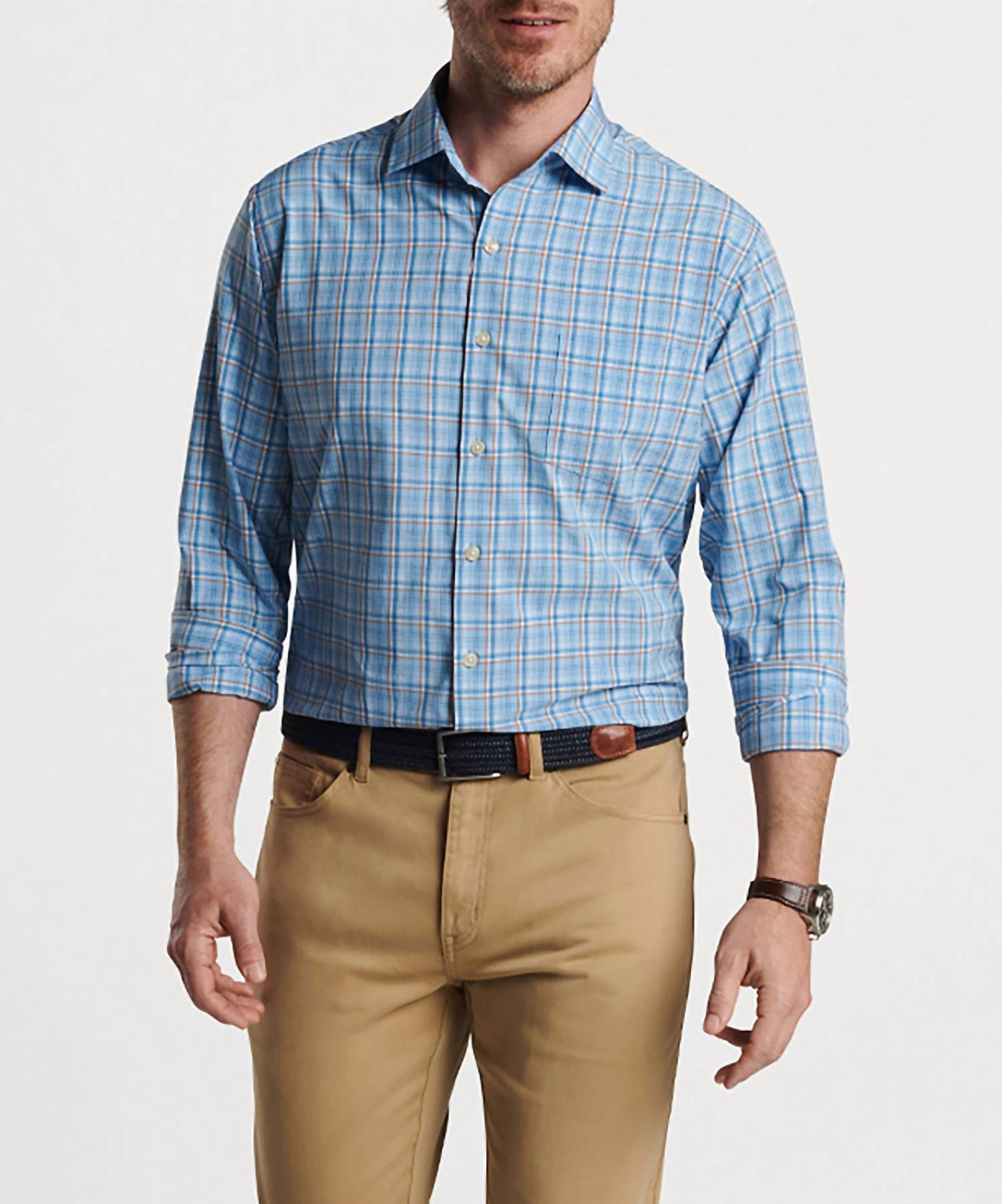 This sport shirt is made from an innovative fabric, soft and lightweight, two-way stretch, moisture-wicking and UPF 50+ sun protection. Features a classic plaid pattern, spread collar and a French placket. Men's 100% polyester sport shirt