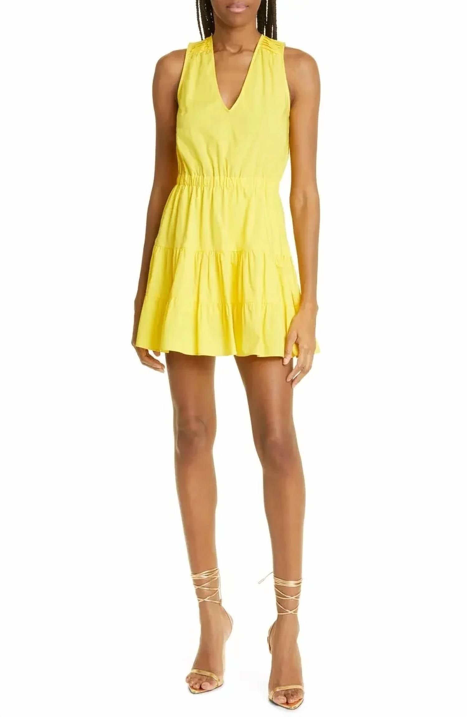 The perfect mini dress for those warmer months.This v-neck mini dress cinches at the waist above the tiered mini skirt, and one spin in this darling design will reveal the tied back made to deliver a flash of skin.