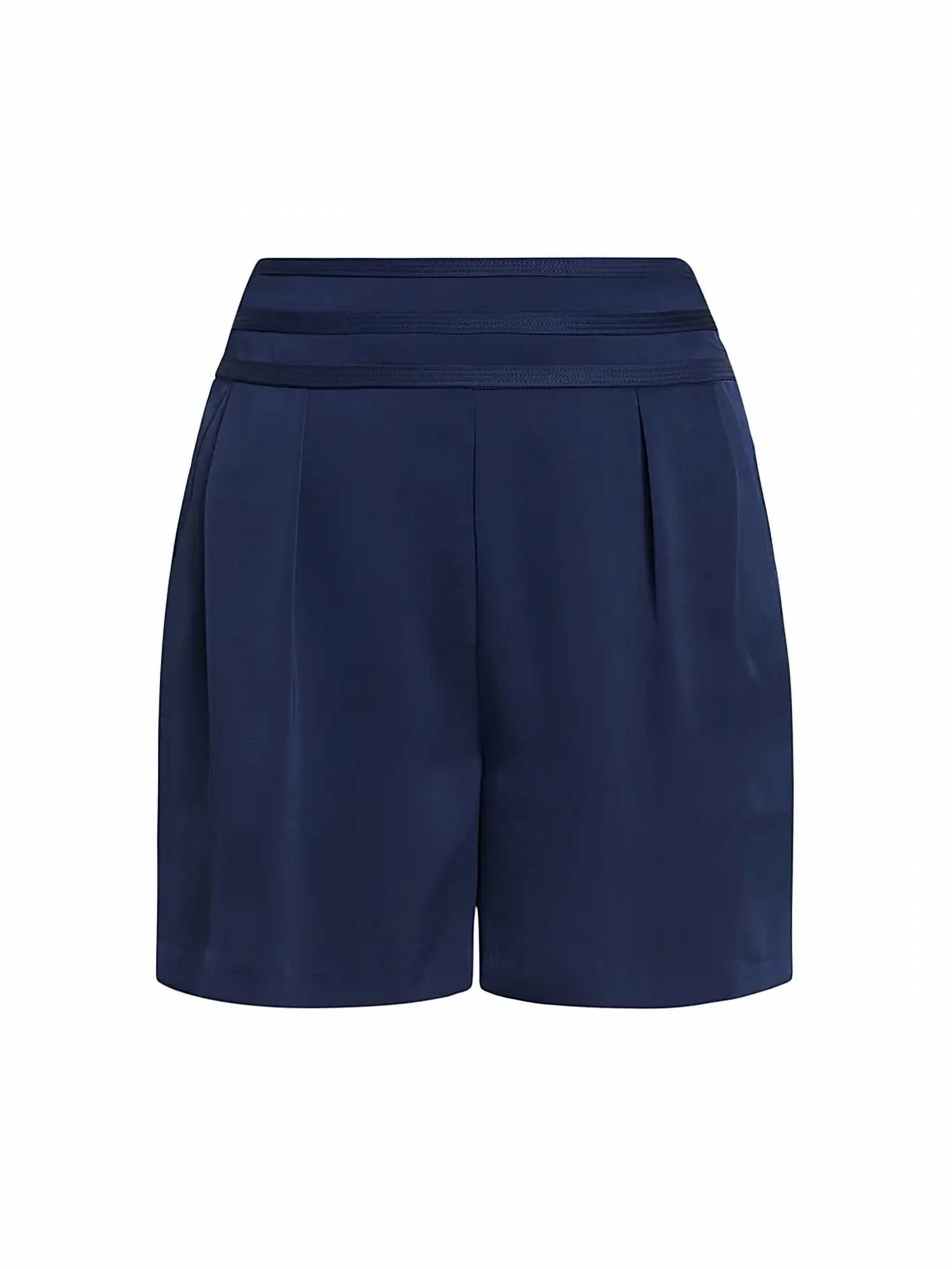 Enhance your wardrobe with the Joss Shorts by Ramy Brook in elegant Spring Navy. These high-waisted shorts feature a subtle banding and a glossy satin finish, making them perfect for summery nights out. Material: 100% Polyester. Dry clean only. Imported, with a 4.5" inseam, 30" leg opening, 13.5" front rise, and 17" back rise for size Medium.