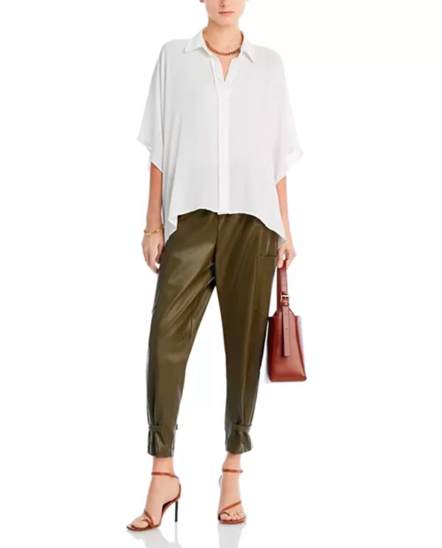 A timeless blouse that will never go out of style. Product Features Point collar Long sleeves Button closures at front Asymmetrical hem Imported Materials & Care 100% polyester Dry clean