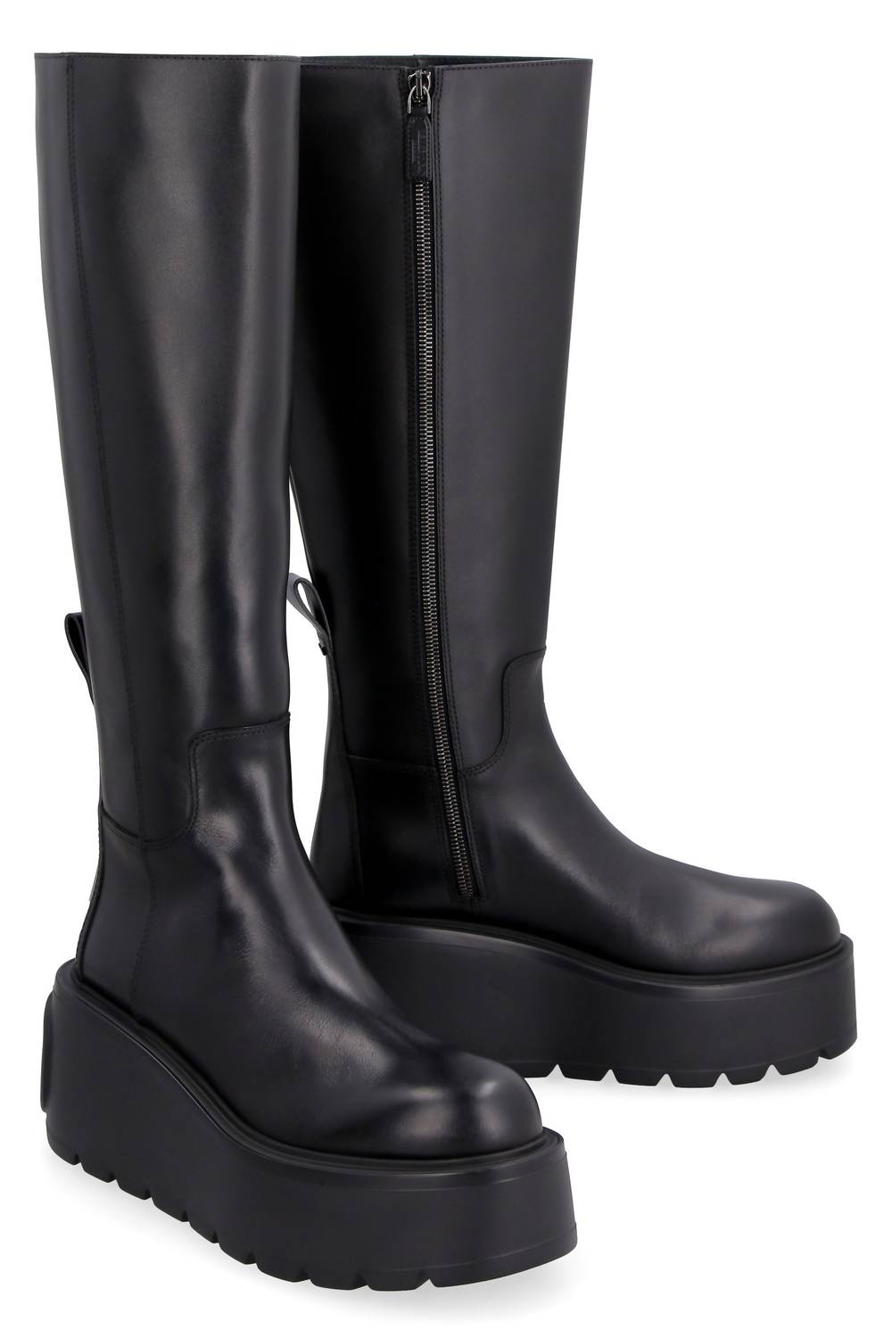 Step out in confidence and showcase your impeccable taste with these fashionable and versatile boots. Their classic style will have you reaching for these boots season after season. Introducing the Women's Uniqueform Leather Knee-boots by Valentino Garavani, a stunning addition to your fall footwear collection. Crafted from 100% luxurious calf leather in classic black, these knee boots boast a chic round toeline and feature a side zip closure for easy wear. Designed with an impressive 8.5 cm platform heel, they offer both height and comfort. Expertly made in Italy, these boots exemplify Valentino Garavani's dedication to high-quality craftsmanship and style.
