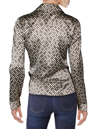 Theory Men's Blouse Collar Split Neck Silk Beige Size Small