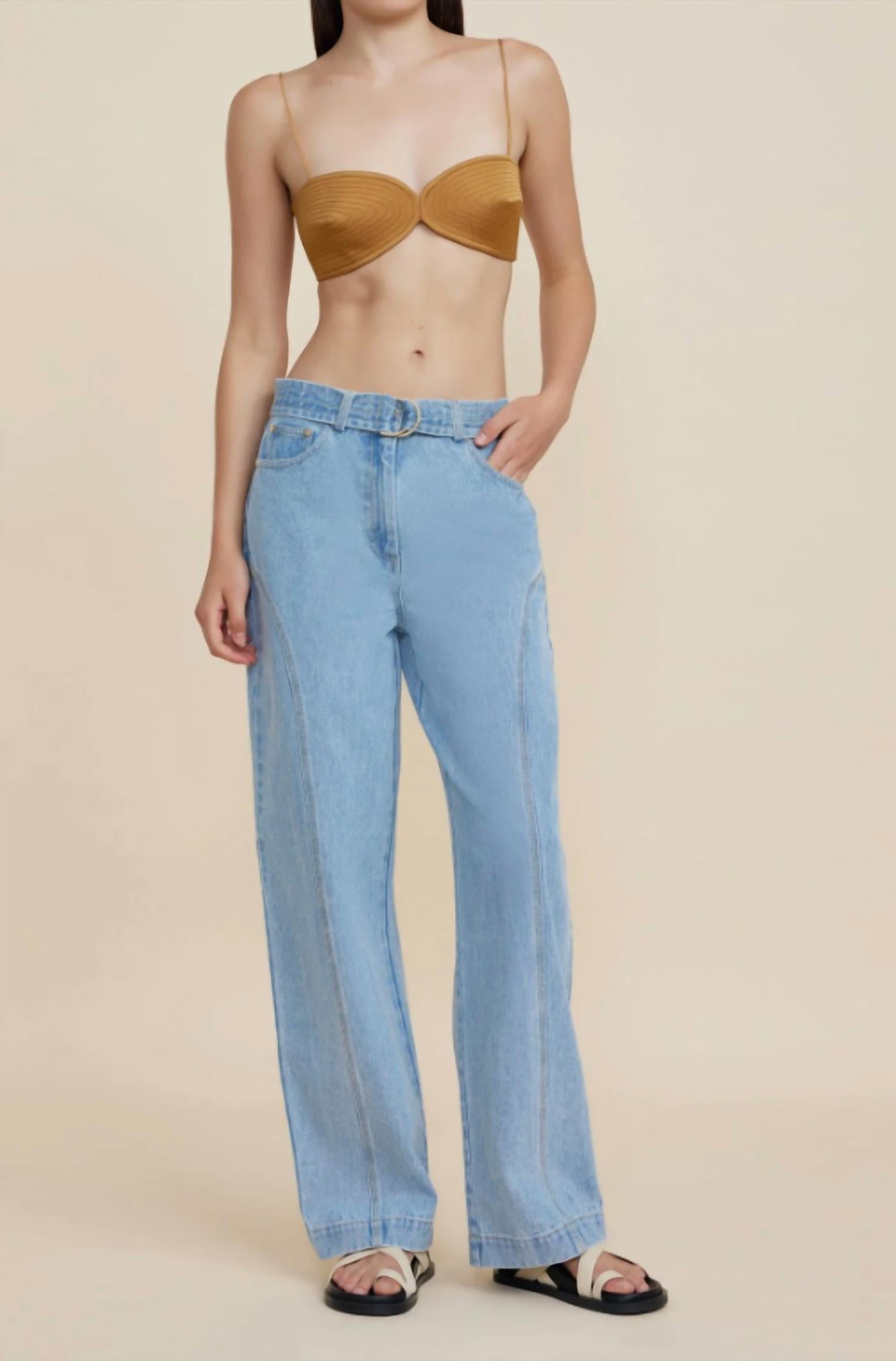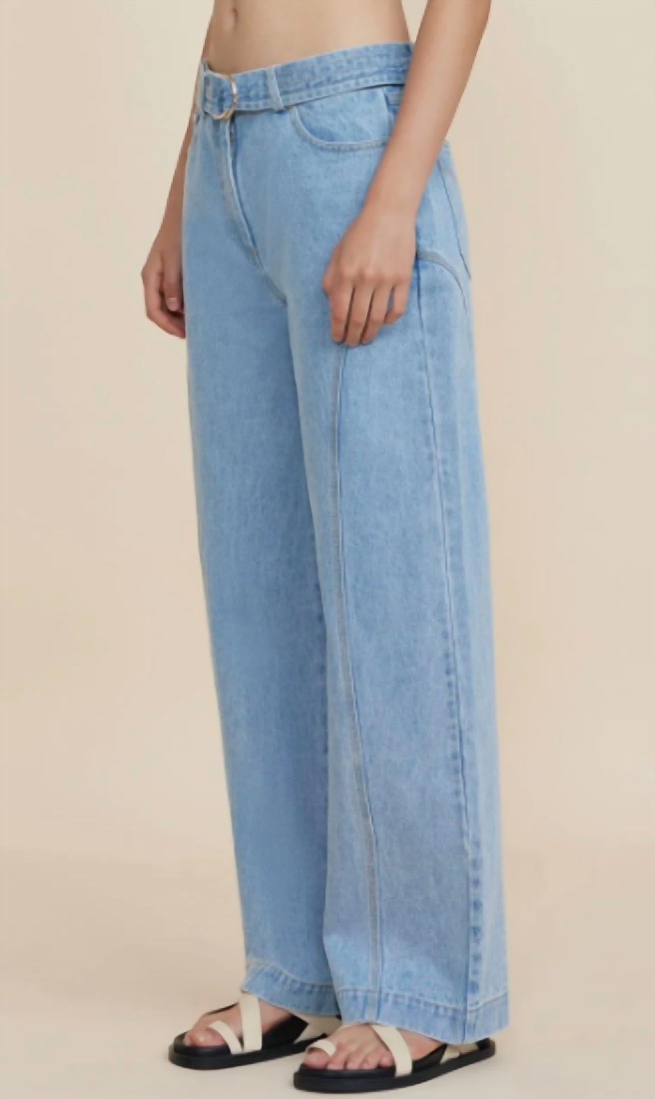 Pair these straight leg jeans with flats, sandals or even heels! You can't go wrong.The Wiston Jean in Mid Wash is inspired by the classic mum jean. Designed to sit lower on the waist, this relaxed silhouette features functional back pockets, d-ring belt with luxe gold hardware and front fly closure. Relaxed denim jean. Functional pockets. Front fly closure. Detachable d-ring belt. Model is 180cm / 5'10″ wearing an AU 8 / US 4. Composition: 100% Cotton