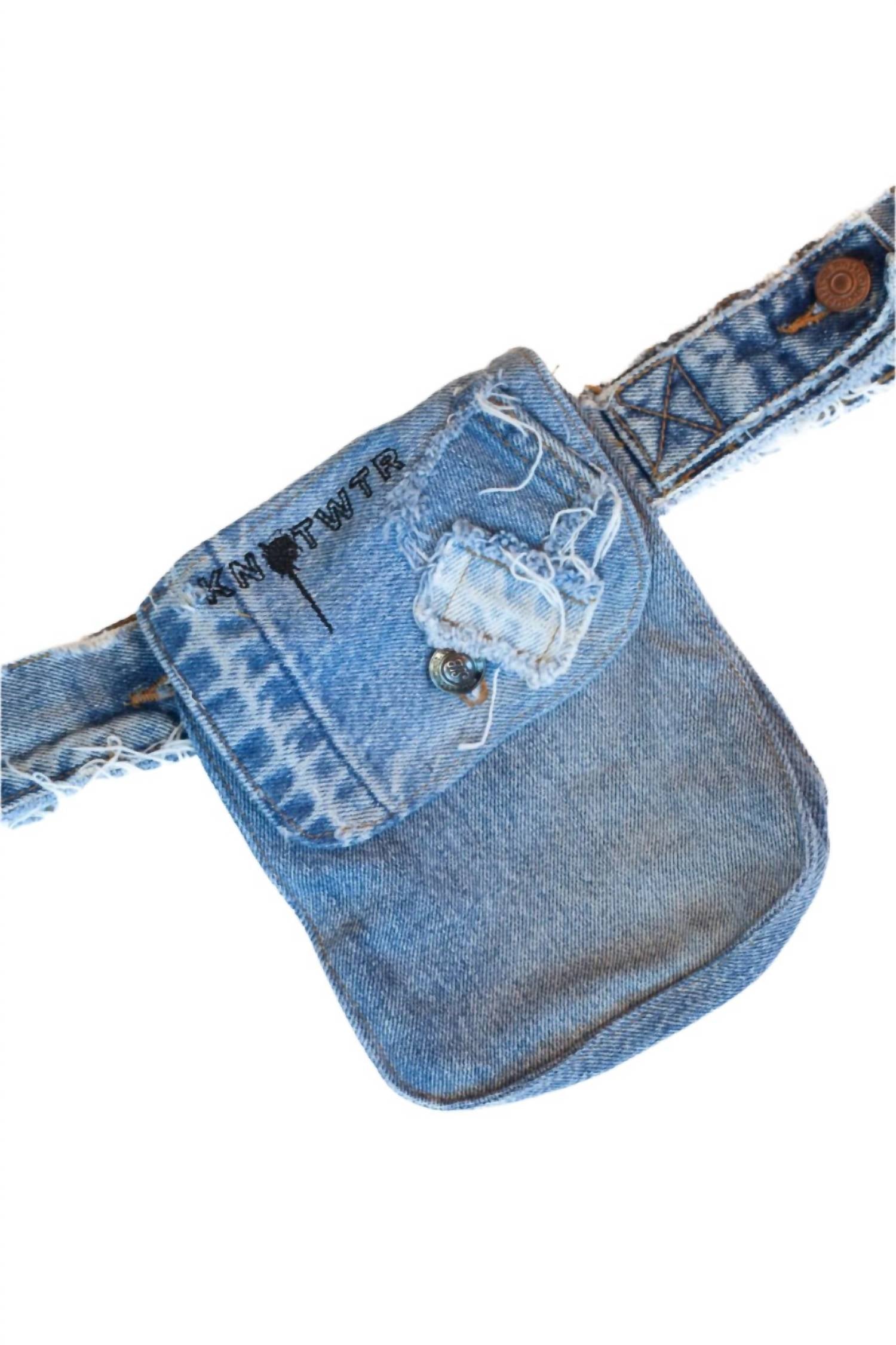 Meet the KnotWTR Kangaroo Denim Belt Pouch, an eco-friendly accessory that combines style with sustainability. This belt bag is crafted from upcycled denim, showcasing a unique, artisanal patchwork design in assorted blue shades. Perfect for hands-free convenience, it features a crossbody style with an adjustable strap and multiple pockets for functionality. Elevate your eco-conscious wardrobe with this responsibly made denim carry-all.