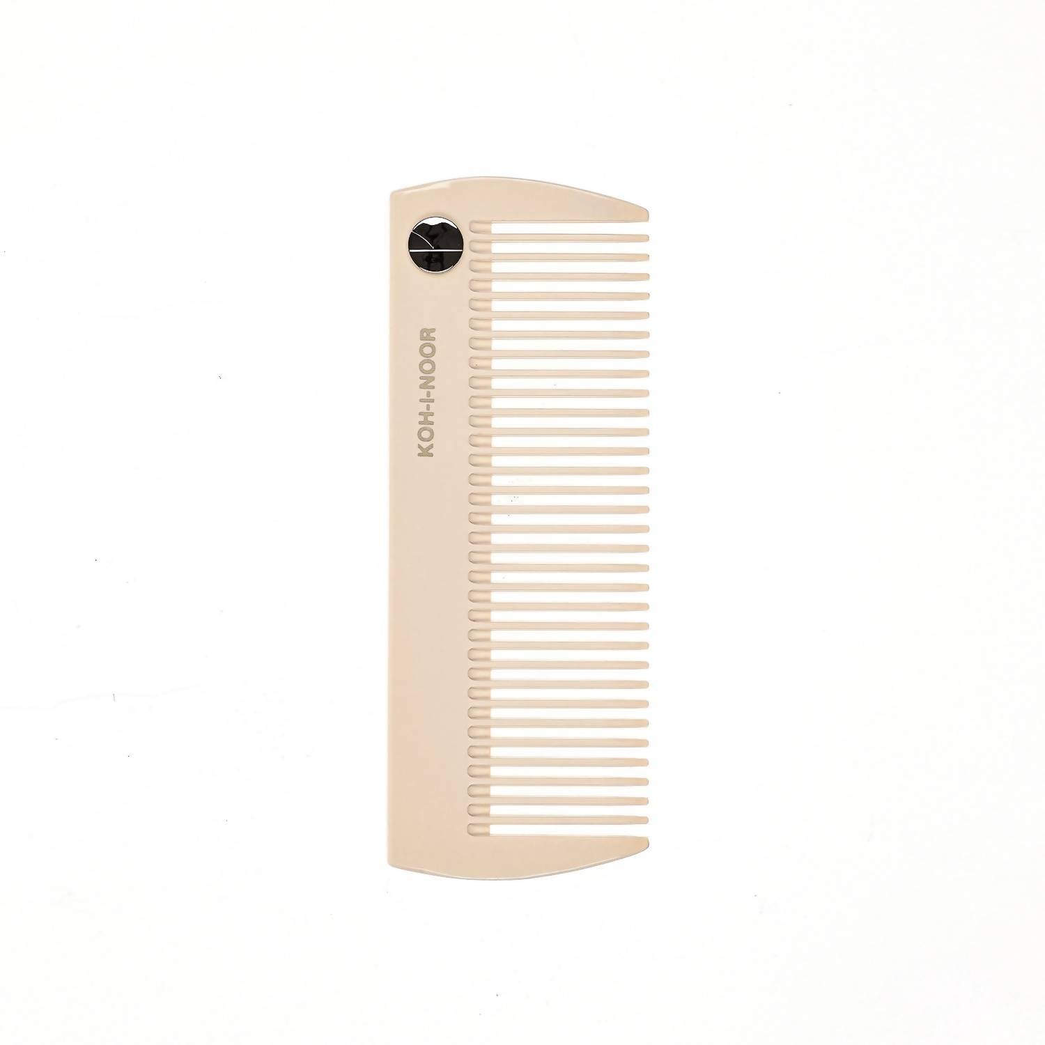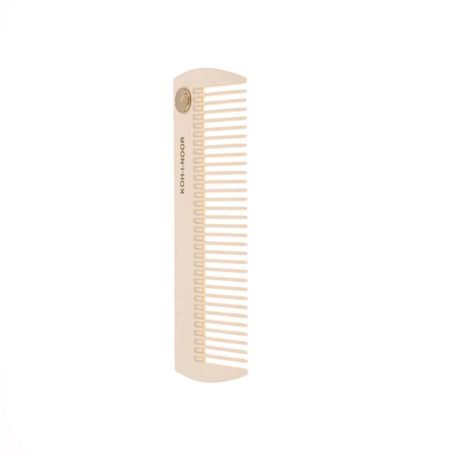 Meet the Women's Wide Tooth Comb by Koh-I-Noor Beauty USA, an exquisite tool for your grooming routine in elegant ivory white. Crafted from premium cellulose acetate, this meticulously hand-finished comb is perfect for all hair types, offering gentle detangling with its wide tooth design. Dimensions: 15 x 5.5 cm. Elevate every moment with a touch of luxury, all while supporting eco-friendly efforts with its biodegradable material and recyclable packaging.