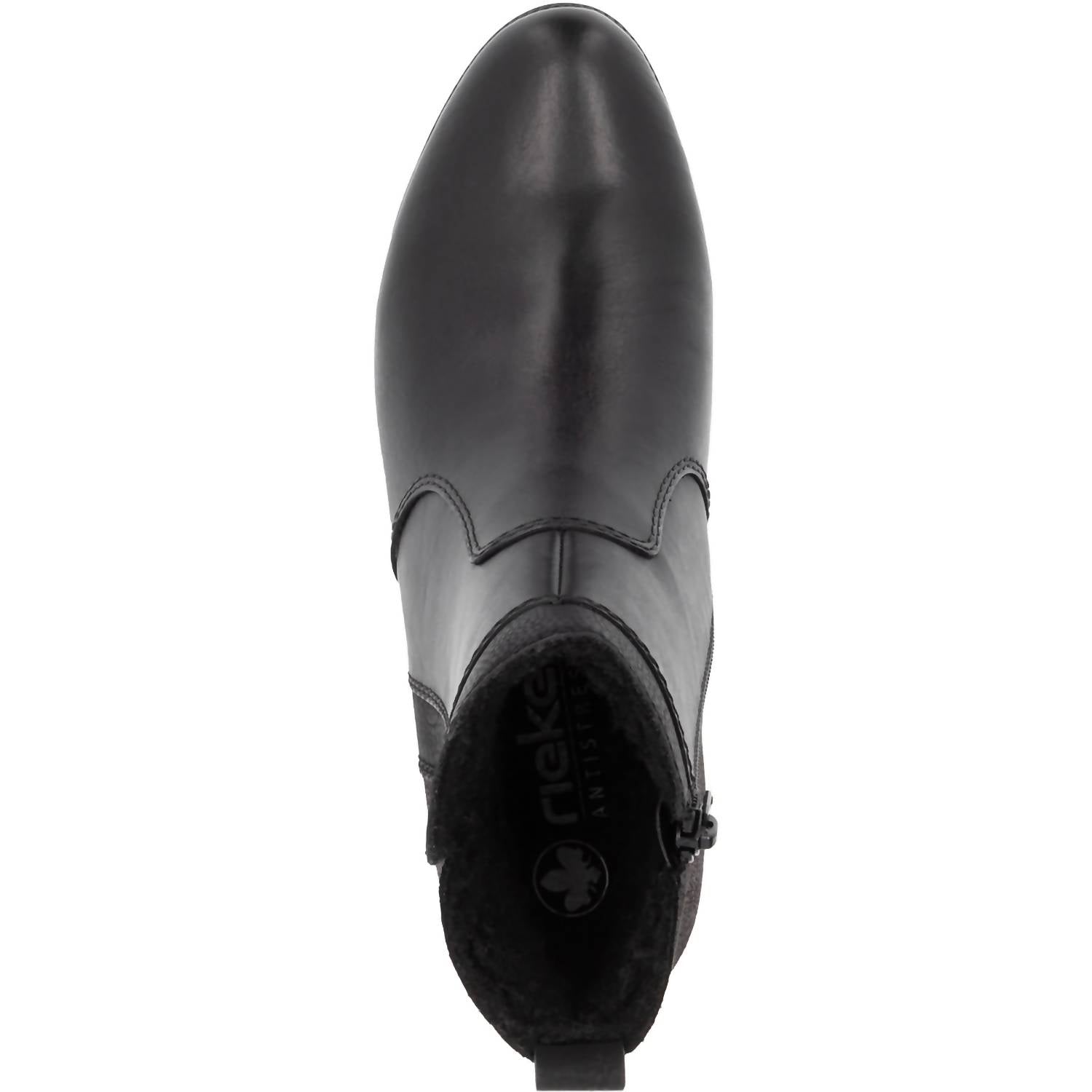 Upgrade your shoe game with these classic heeled boots, designed to merge sophistication and style. Comfortable enough for long days or a night out on the town. Take on cold days with confidence in the Rieker 78658 ankle boots made from smooth leather in a durable stitch-down construction. These boots are both sturdy and flexible. The quick-zip design makes them easy to put on, and the block heel with a grippy sole provides steady traction for secure steps. Lined with cozy insulation, your feet will stay warm and dry all day, thanks to the water-resistant RiekerTEX technology. Stylish and practical, these boots are ready to brave the chilly weather with you!