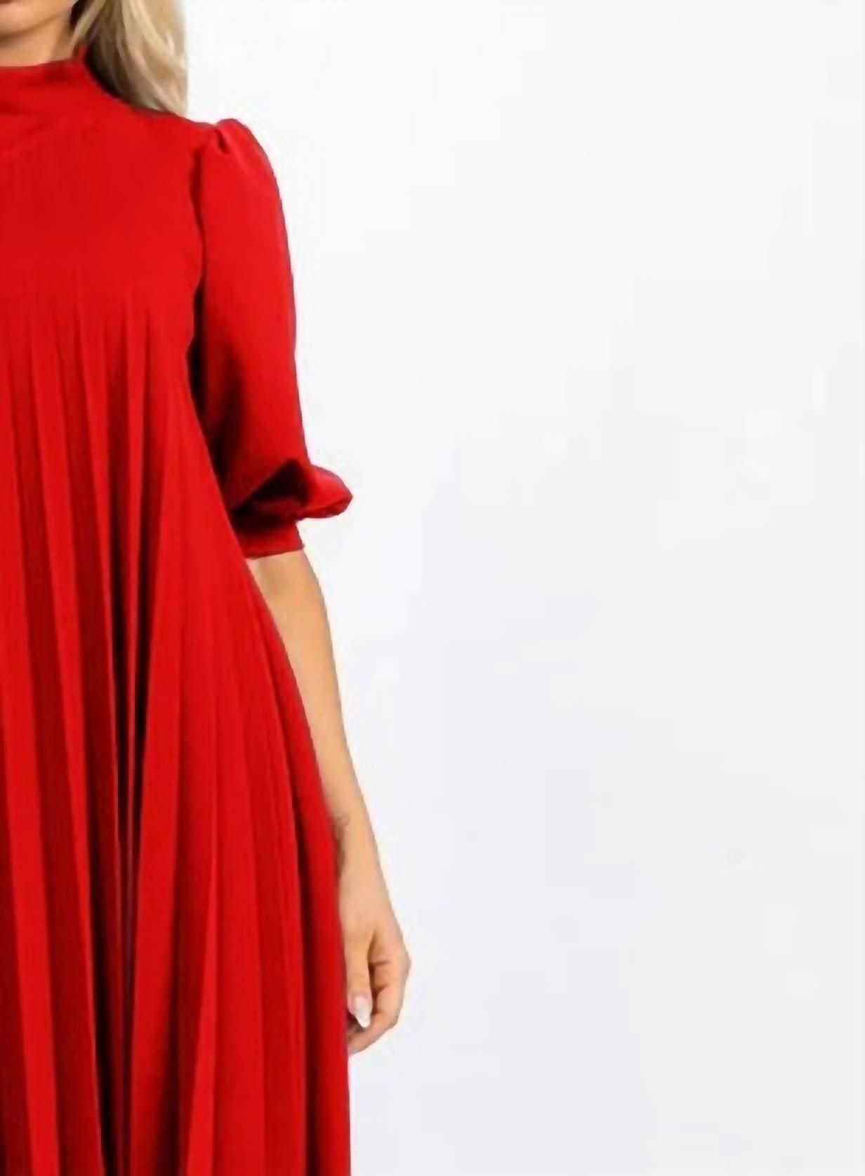 A midi dress so versatile, your options for wearing it are endless. Introducing the Mock Neck Pleated Dress by Viva Curvy, a stunning red dress tailored for both elegance and comfort. With chic short sleeves and a shift silhouette, this midi dress crafted from high-quality crepe fabric features a sophisticated mock neck, perfect for an evening event. Proudly made in the USA, its minimalist design makes it a versatile choice for summer occasions. This solid piece celebrates femininity without pockets, ideal for a special Valentine's Day look.