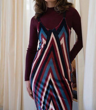 Mima Rosso - Velour Striped Pinafore Dress