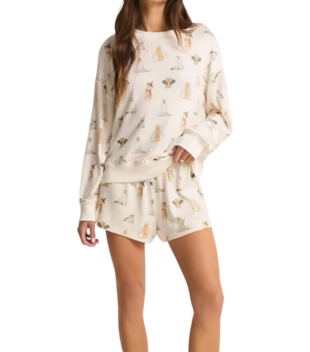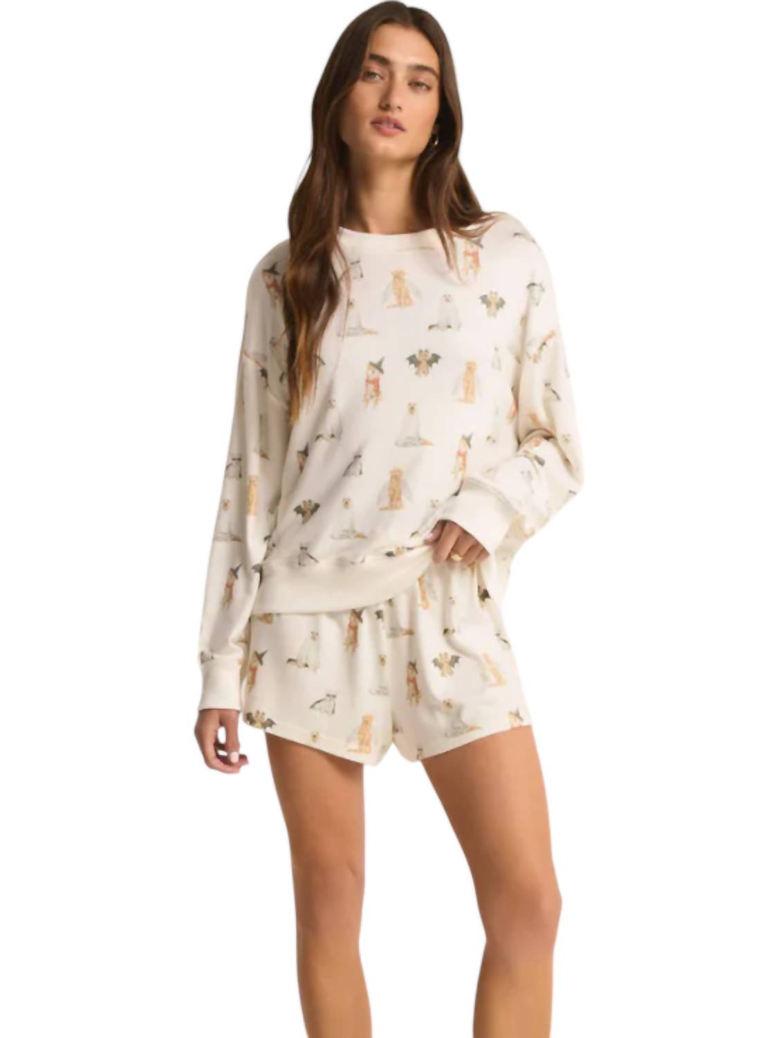 Fit to perfection, we love these high-waist shorts and you will too. Ultimate loungewear essential in a charming festive dog print. High-rise shorts offer a regular fit. Crafted from a silky jersey composed of 95% Polyester and 5% Spandex. Ensuring buttery-soft comfort. Feature an elastic waistband with a pull-on closure for easy wear. Machine wash cold on a gentle cycle and tumble dry low or lay flat to dry.