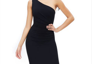 Dress the Population Martine Stretch Crepe One-Shoulder Dress in Black Size X-Large