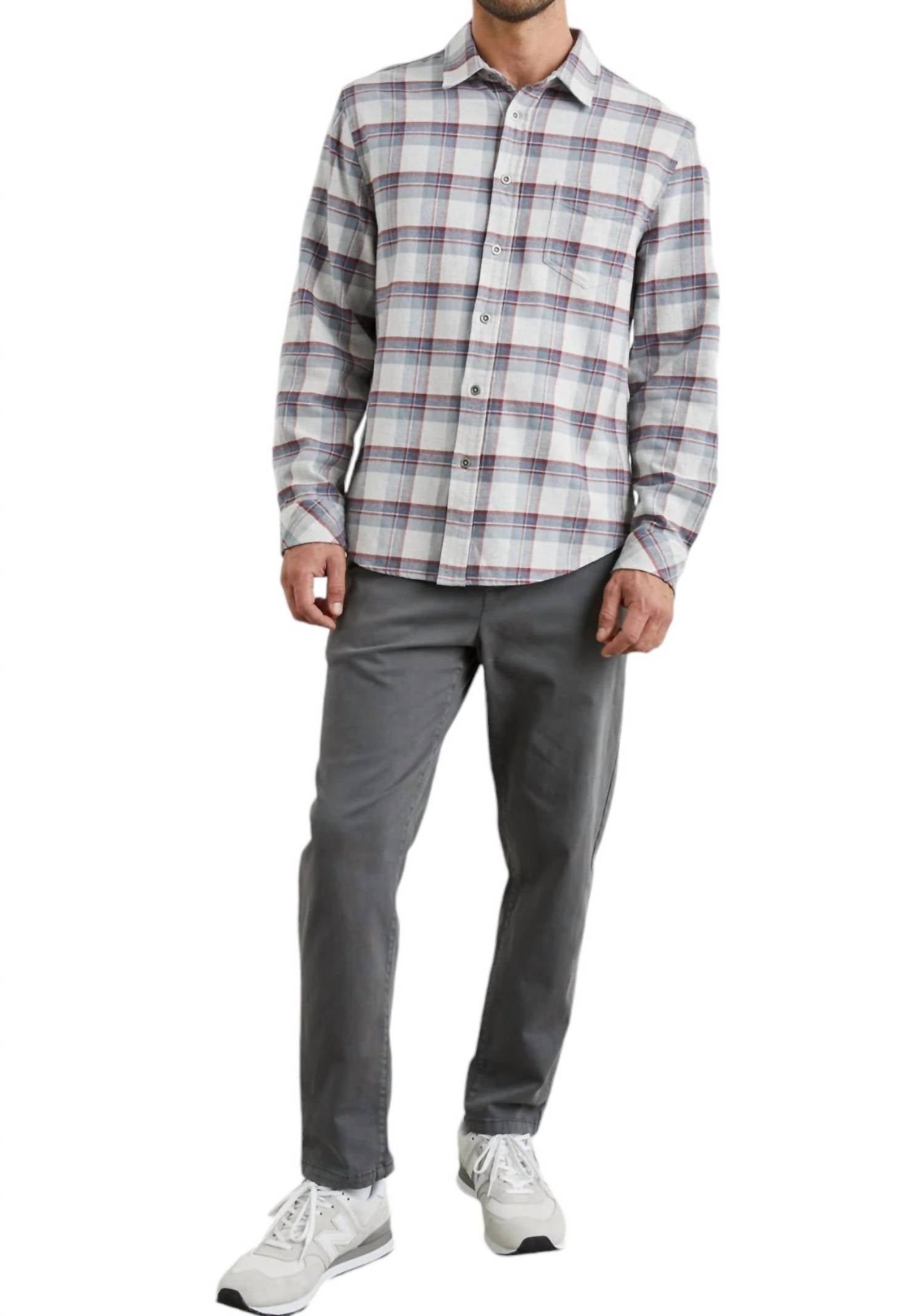The Forrest flannel is designed for cooler temperatures, made from heavy brushed 100% cotton to provide maximum warmth. This collared button-down shirt features a single chest pocket and a loose fit, ideal for layering. With a front body length of 29.5 inches (size Medium), it's both cozy and durable, perfect for everyday wear. For care, machine wash cold, tumble dry low, and remove promptly. A cool iron can be used if necessary. The model is wearing size M.