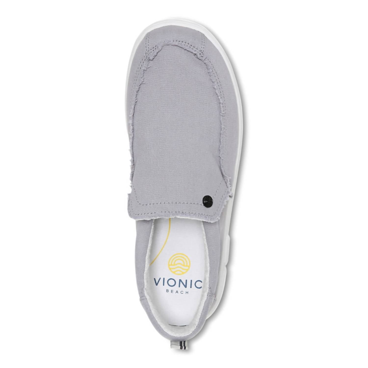 Discover the MEN'S SEAVIEW CANVAS SLIP-ON SHOES by VIONIC, perfect for effortlessly casual and summer outings. The eco-conscious design features an eco-certified cotton canvas upper, offering both style and sustainability in a leather-free option. These shoes boast a lightweight TPR outsole for superior comfort along with a removable twill-covered EVA footbed for enhanced arch support. Easy to maintain, simply machine wash in cold water after removing the orthotic footbed and air dry to keep them looking fresh. Toe Shape: Round Toe. Shoe Width: Medium.