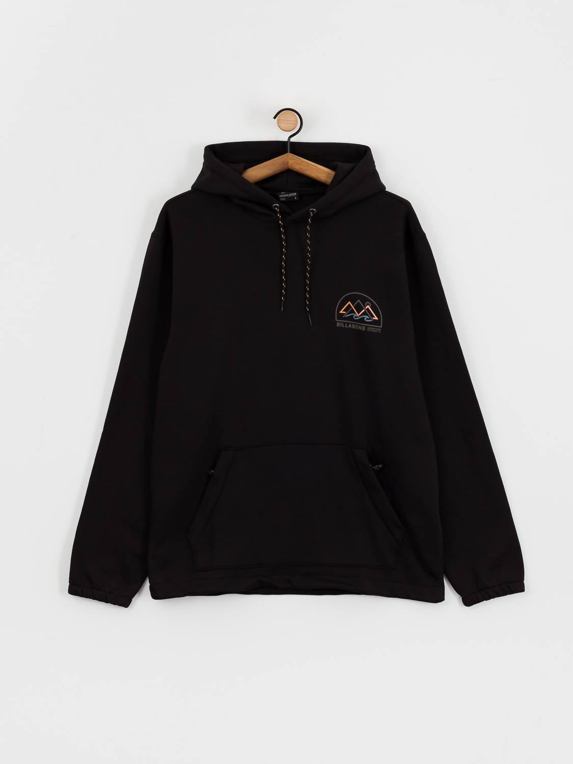 The Compass Pullover by Billabong is an eco-conscious choice crafted in a blend of 60% recycled polyester and 40% cotton brushed fleece, providing a comfortable and sustainable option for your wardrobe. This black hoodie features a hooded neckline and long sleeves for classic appeal, complemented by durable ribbed cuffs and waistband. It includes practical kangaroo pockets with zipper closure for secure storage. Embrace both style and sustainability with the Adventure Division logo labels.
