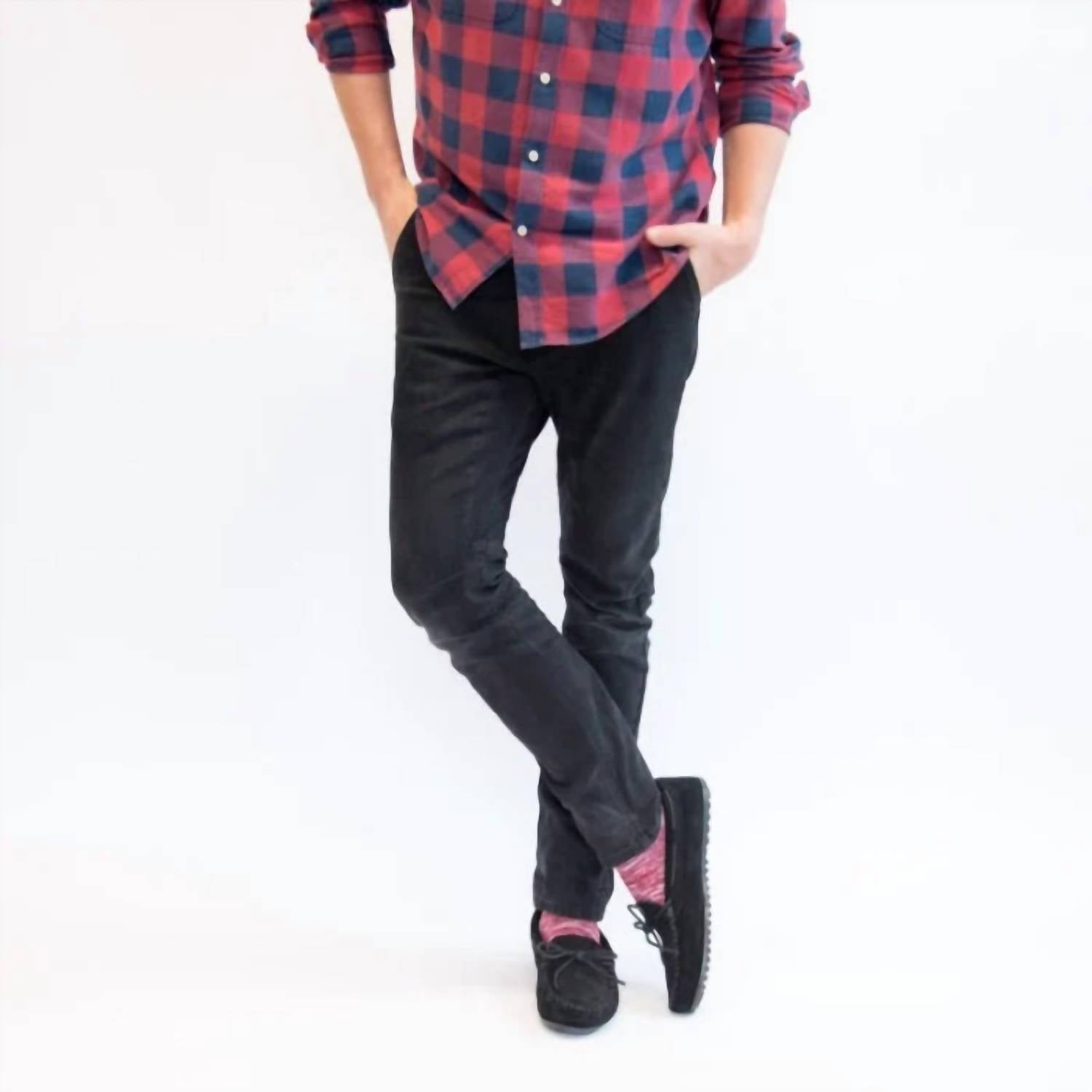 Discover the Men's Classic Moccasin Slip-on Shoes by Minnetonka, crafted for comfort and style. These black moccasins feature a traditional design tailored in soft, durable leather, offering flexibility and long-lasting wear. The versatile style allows them to complement a wide array of casual and semi-casual outfits. Suited for vacations and minimalist fashion trends, they feature a round toe and a flat heel, making them perfect for the laid-back days of spring.