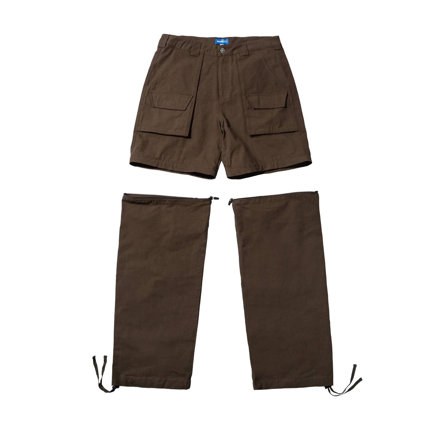 Introducing the Men's Earthen Moraine Pants by MARKET, a solid brown cargo essential featuring a relaxed fit. Made from 100% Cotton, these pants boast a straight leg style with a comfortable mid-rise waist and practical zip closure. Designed for durability and versatility, they include pockets and are perfect for travel or any occasion. Care instructions include machine washing to maintain their high quality and enduring style.