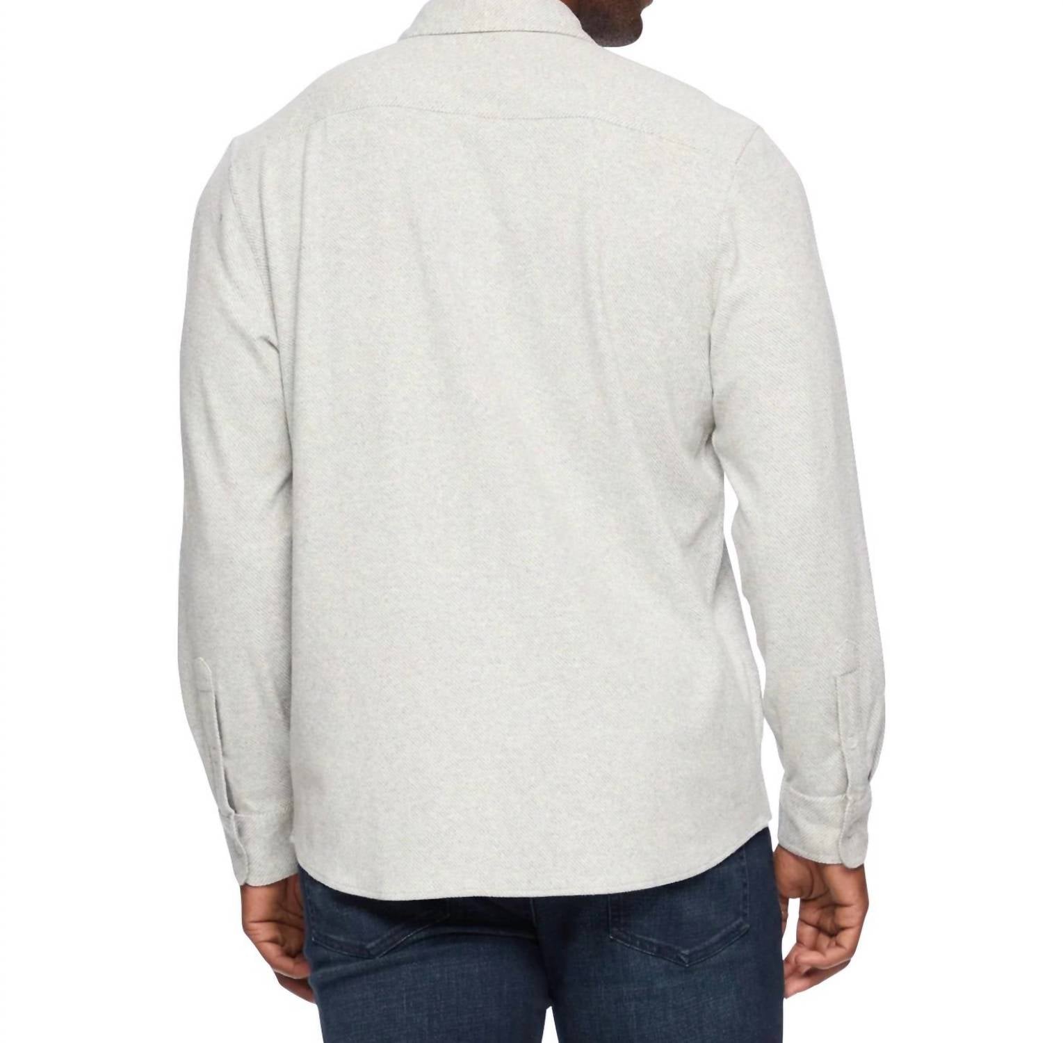 Elevate your wardrobe with the Hero Stretch Flannel Shirt by Flags & Anthem in versatile Light Grey. This women's long sleeve shirt, featuring a tailored athletic fit, is crafted from a comfortable blend of 49% Cotton, 32% Poly, 17% Viscose, and 2% Elastane. It includes contrast fabric details and dual front chest pockets for added style and functionality. Imported and designed with built-in stretch for all-day comfort, it offers a 29.5" medium length, perfect to wear either tucked or untucked. Care: Machine wash. Darius is 6'3", 195 lbs, and wears a size large.