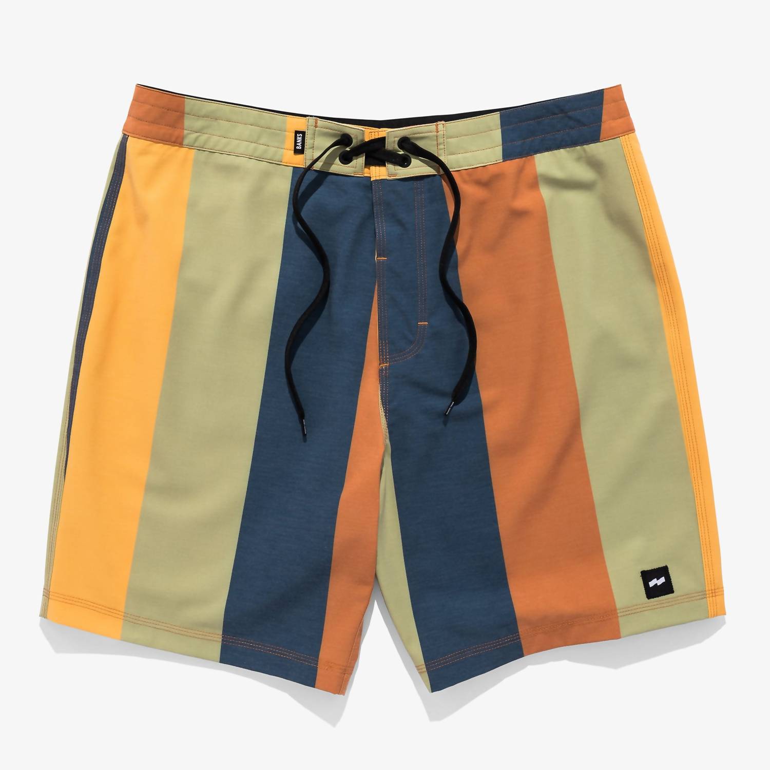 Dive into summer style with the Infinite Boardshort by Banks Journal in the striking shade of Baked Clay. Crafted from 90% recycled polyester and 10% elastane, this patterned swim bottom features a versatile 17-inch Everyday fit, ideal for beach days. The design includes a practical back patch pocket with a secure zipper closure, complete with recycled polyester drawcord and woven labels. Ideal for a classic yet sustainable look, this boardshort stands out with its eco-friendly details, making it a must-have for the environmentally conscious consumer. Model is 6’1” with a 37” chest, 31” waist, and 37” hips, wearing a size 32 bottom.