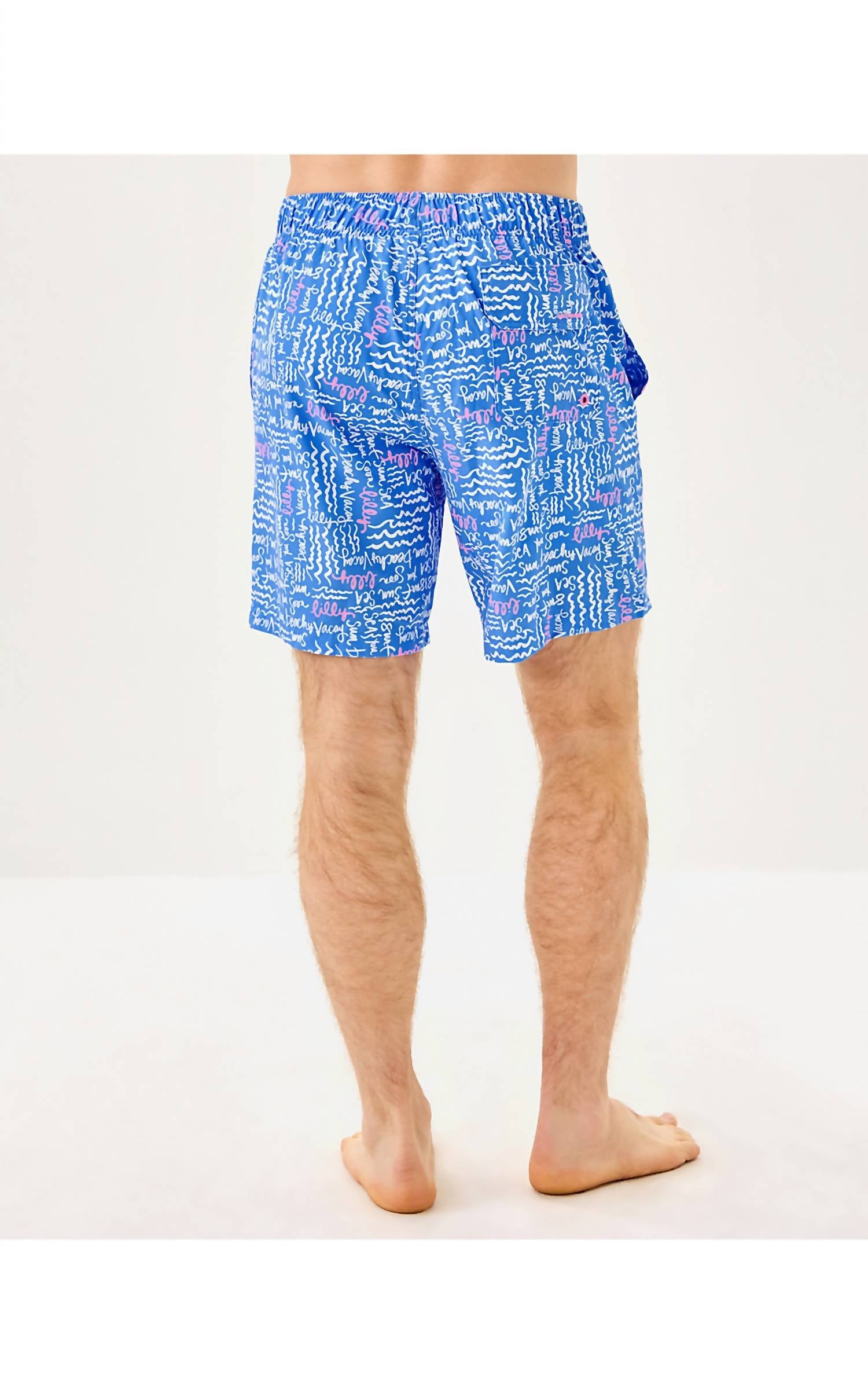Dive into summer with the Stuff Del Lago Swim Trunk by Lilly Pulitzer, a stylish choice for any beach day. Featuring an inseam of 6 inches, these men's swim trunks offer complete comfort with an elastic and drawstring waist and a mesh boxer liner. Crafted from Seaside Stretch Woven fabric composed of 86% Polyester and 14% Spandex, they promise unrestricted movement. Easy to care for, simply machine wash cold on a delicate cycle.