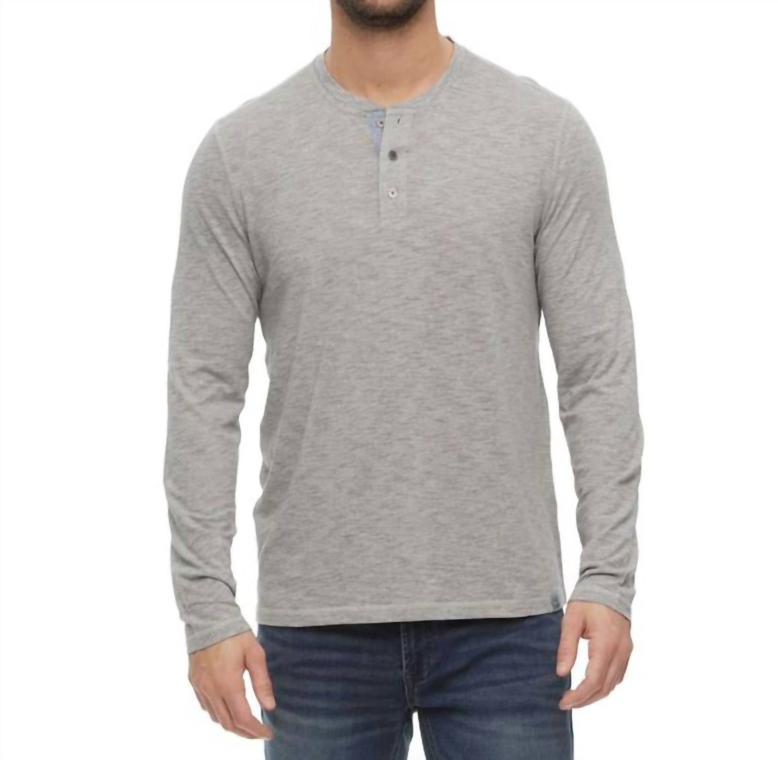 Introducing the Birmingham LS Siro Slub Henley Shirt by Flags & Anthem, a stylish choice in solid grey perfect for every man's wardrobe. This long sleeve piece features a classic crewneck design with a comfortable pull-on closure, offering both ease and versatility. Ideal for a range of casual settings, this shirt is crafted without pockets for a sleek silhouette. While specific care instructions aren't provided, it's recommended to follow standard practices to maintain its quality.