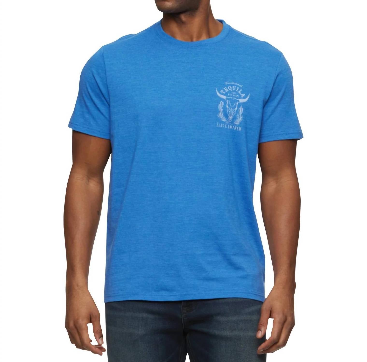 The Flags & Anthem Traditional Tequila Tee in Royal Blue adds a touch of casual style with its all-original graphic design. This short sleeve, crewneck tee is crafted from a lightweight and breathable cotton blend, perfect for effortless summer wear. Composition: 58% Cotton, 42% Polyester. Closure: Pull On. Care instructions specify machine wash and tumble dry.