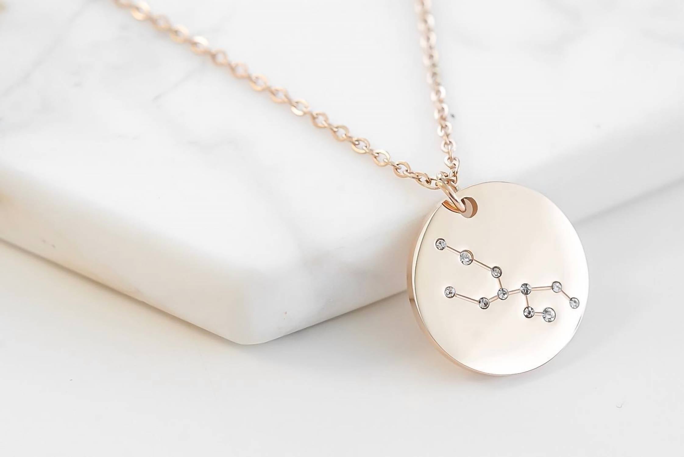The perfect stand-out necklace that complements even the most basic t-shirt. Discover the Women's Taurus Necklace by KINSLEY ARMELLE, a stunning fashion piece crafted from 18K Rose Gold Ion Plated Stainless Steel. This hypoallergenic pendant, perfect for sensitive skin, features accent zircon gemstones for an elegant touch. The necklace is designed with a flexible size of 18 or 22 inches, with an additional 3-inch extender for ideal length customization. Embrace your zodiac sign in exquisite rose gold, a timeless addition to any jewelry collection.