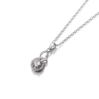 Sterling Silver Flower Halo Pendant Necklace with Swarovski Crystals