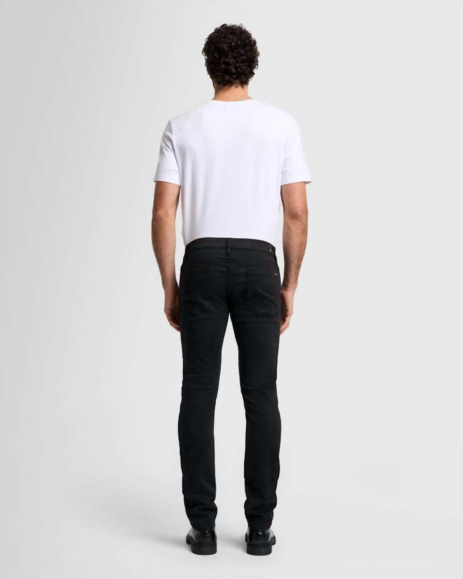Introducing the Paxtyn Skinny Jean by 7 For All Mankind, a must-have for the modern man's fall wardrobe. Crafted from durable denim, these solid, dark wash jeans feature a straight leg with a mid-rise waist, perfect for any workwear occasion or New Year's Eve celebration. A functional zip closure and pockets add practicality to the sleek design. Care for them easily at home with machine wash and tumble dry instructions.