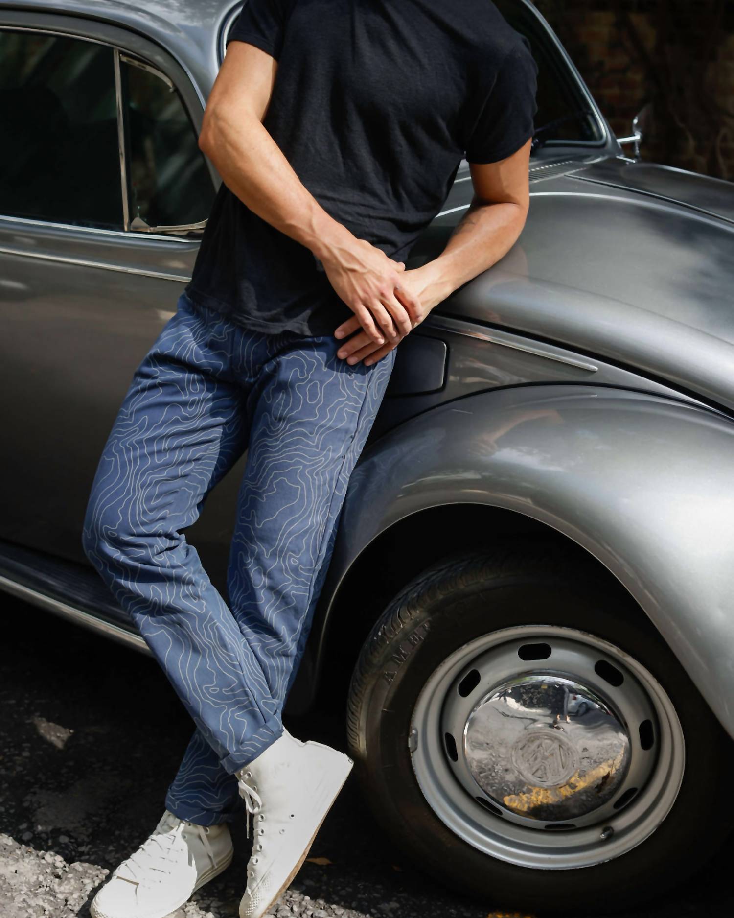 Introducing the Canvas Cham Pant by Alex Crane, a standout piece for quiet luxury in a rich River color. These men's chinos feature a solid pattern with a comfortable fit and a tapered leg style, perfect for summer or holiday parties. Made from soft, organic cotton, they come with a button closure and mid-rise waist. Easy care with machine wash and tumble dry, though high heat may cause slight shrinkage.