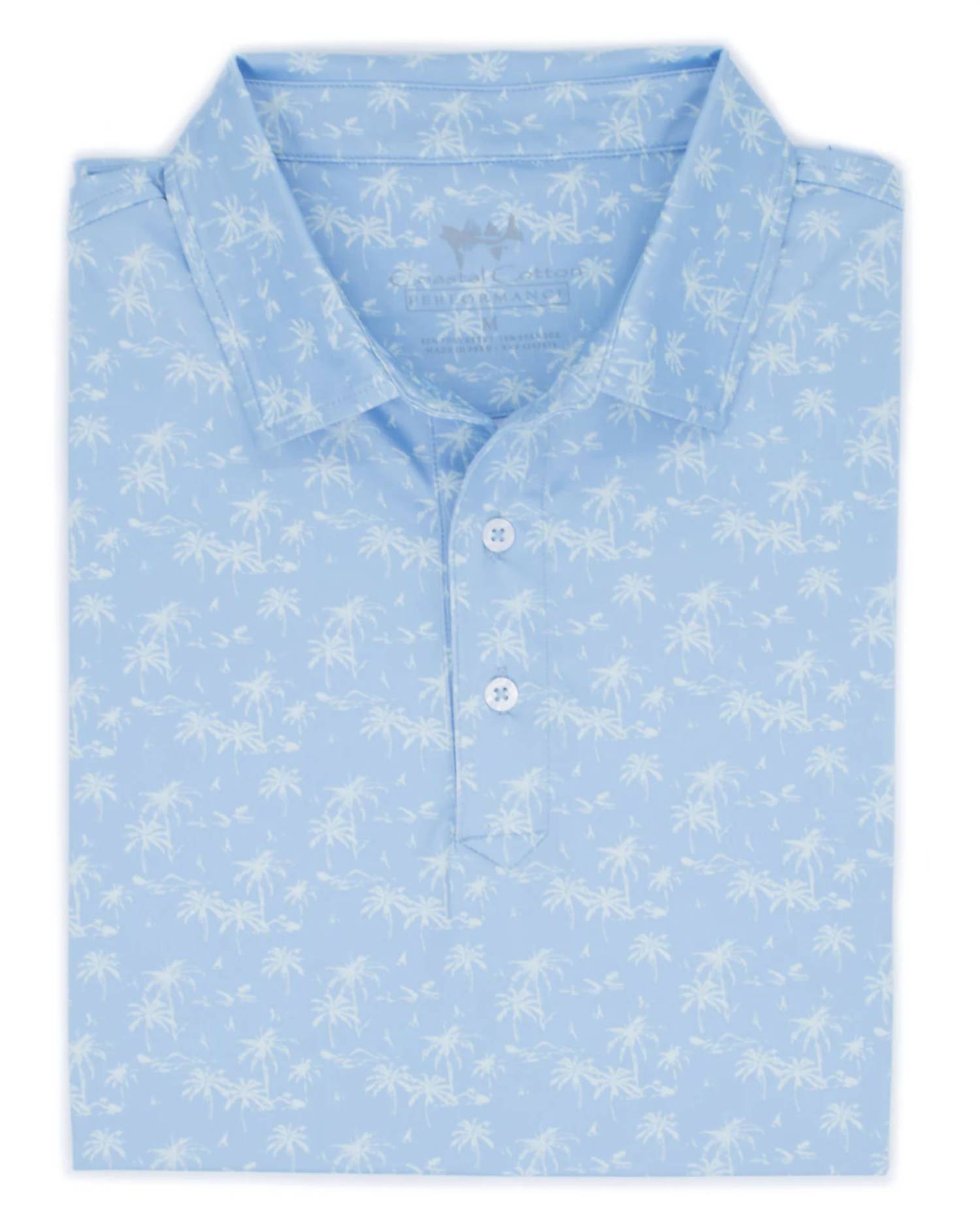 The Coastal Cotton Men's Printed Polo offers a stylish blend of comfort and functionality, featuring short sleeves and a timeless collared neckline. Crafted from 54% cotton and 46% polyester, this polo in a vibrant Palms pattern includes a two-button placket with quality wood buttons and an embroidered chest. Made in Peru, it boasts antimicrobial, quick-drying, and moisture-wicking properties, along with being wrinkle and stain resistant. Perfect for summer game days, this patterned polo is a must-have for any wardrobe.