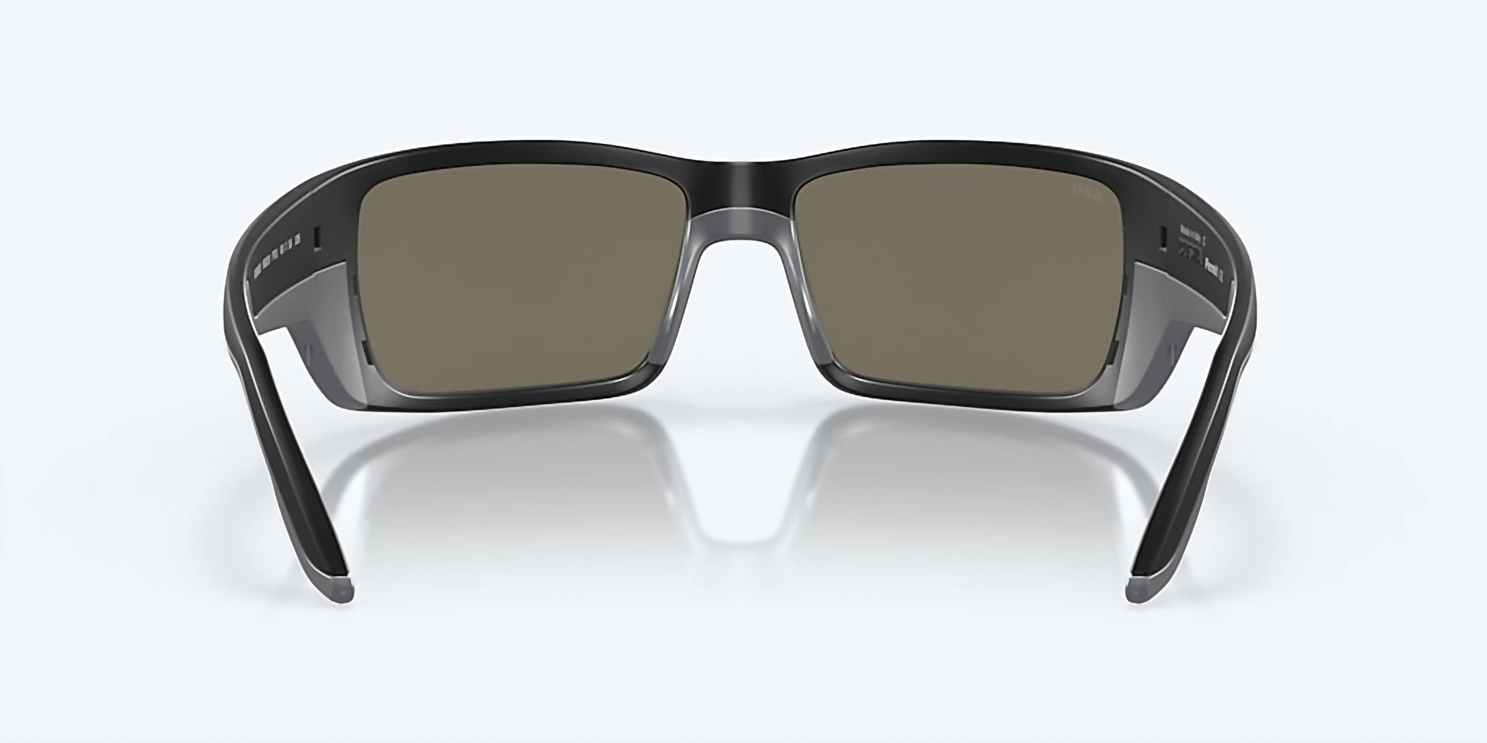 Introducing the Costa Del Mar Men's Permit Sunglasses in a sleek Matte Black frame with Blue Mirror lenses, crafted with precision in Italy. These square-style sunglasses feature polarized glass lenses (580G) for optimal clarity and performance on sport fishing days. Designed with a Base 8 Decentered lens curve, they provide a regular frame fit with dimensions of 140 mm frame width, 16 mm bridge width, 62.6 mm lens width, 40.5 mm lens height, and 125 mm temple arm length. With co-injected Hydrolite™ lining, flexible hinges, and side vents, these sunglasses ensure comfort and functionality, making them an ideal choice for anglers.