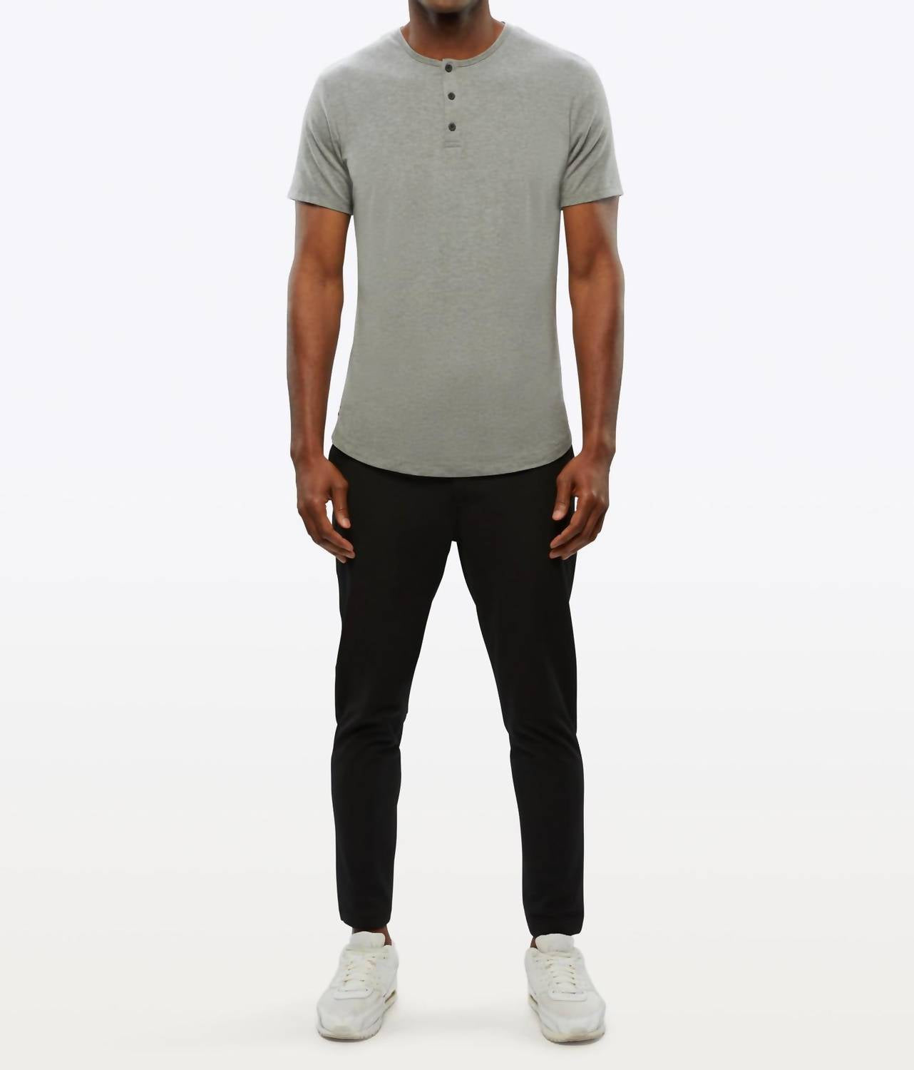 Experience effortless sophistication with the Henley Short Sleeve Tee by CUTS, available in the chic color Stratus. This piece features short sleeves, a signature fit that contours the chest and shoulders, and a curve-hem design that elegantly drapes between the waist and hip. Crafted from high-quality polyester, it offers a solid pattern and a minimalist appeal perfect for any spring dinner party, including Thanksgiving. Closure: Pull on. Care: Machine wash and tumble dry for easy maintenance.