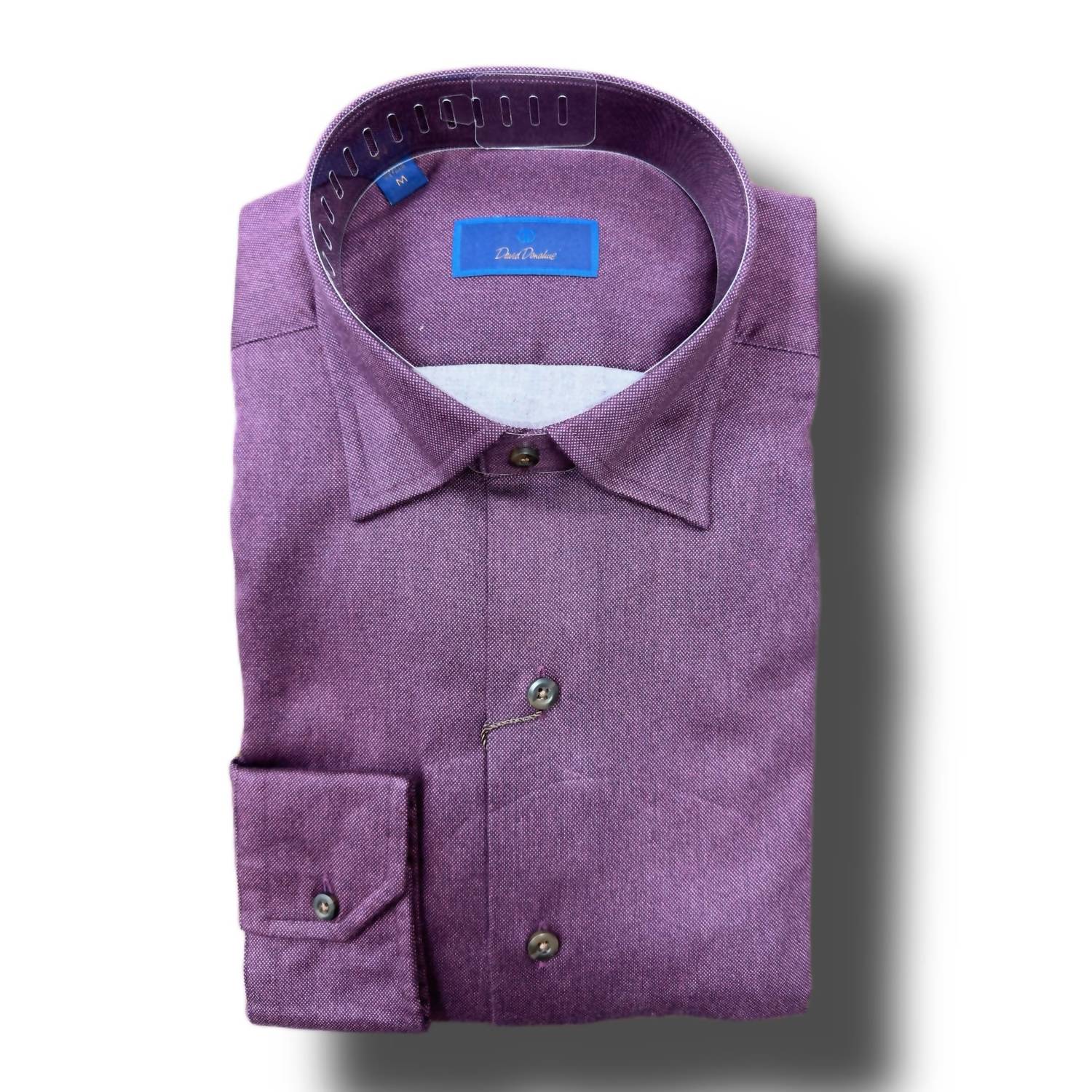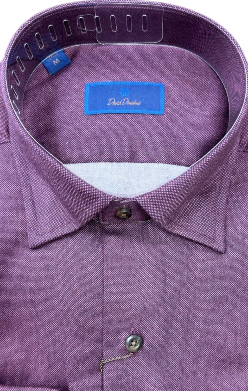 Upgrade your wardrobe with the Men's Long Sleeve Knit Shirt by David Donahue, crafted in noble Merlot for sophisticated workwear style. This long sleeve shirt features a soft hidden button collar and a French placket, made from 100% cotton with twill weave, ensuring comfort and durability. Its design includes adjustable mitered cuffs and two back pleats for added comfort, with a button closure for a classic look. Care for this imported, solid pattern shirt by machine washing; dry instructions are not specified.