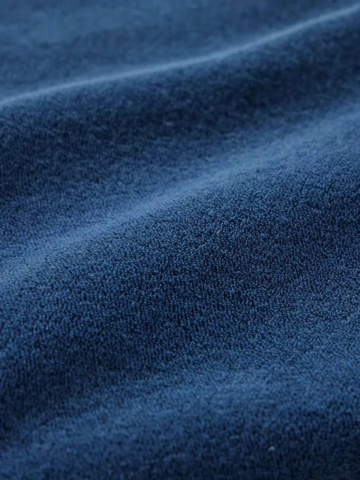 Introducing the Ravello Short Sleeve Terry Polo by FAIR HARBOR, a retro-inspired essential in sophisticated navy. Made from 79% organic cotton and 21% recycled polyester, this lightweight and breathable polo is perfect for summer. The short sleeves and easy pull-on design complement its chic collar for an effortless style. Care instructions include hand wash and line dry.