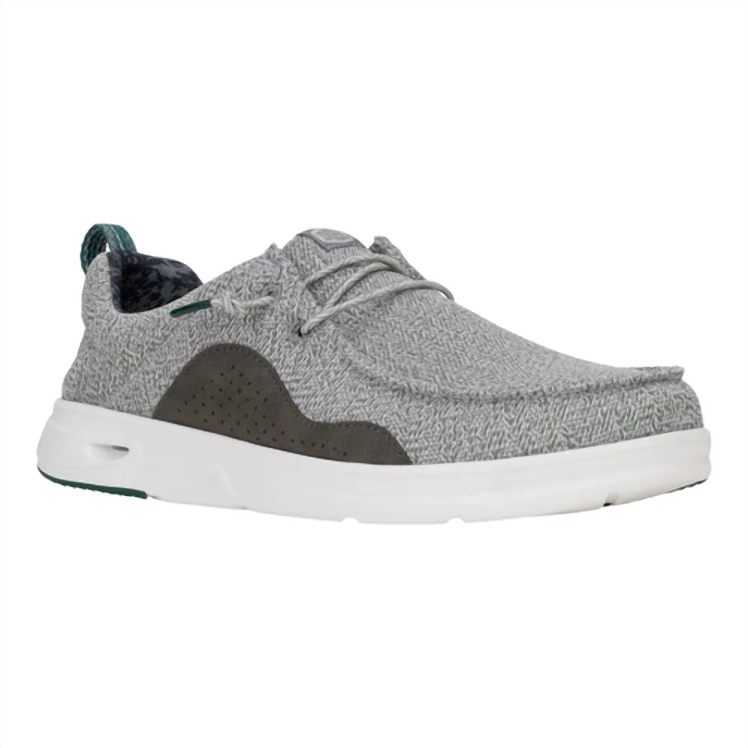Experience comfort and style with the Men's Wally Hey2o Mesh Lace Shoe by HEY DUDE, featuring a breathable textile upper in Monument Grey/Dawn Blue. The easy-on system and elastic laces ensure a perfect fit, while the drainable EVA midsole and perforated removable insole keep your feet dry and comfortable. Designed with a relaxed fit, these loafers cater to laid-back vibes with TPR pods on the outsole for enhanced durability and grip. Perfect for travel, this shoe combines functionality and a flat heel with a round toe shape for ultimate ease.
