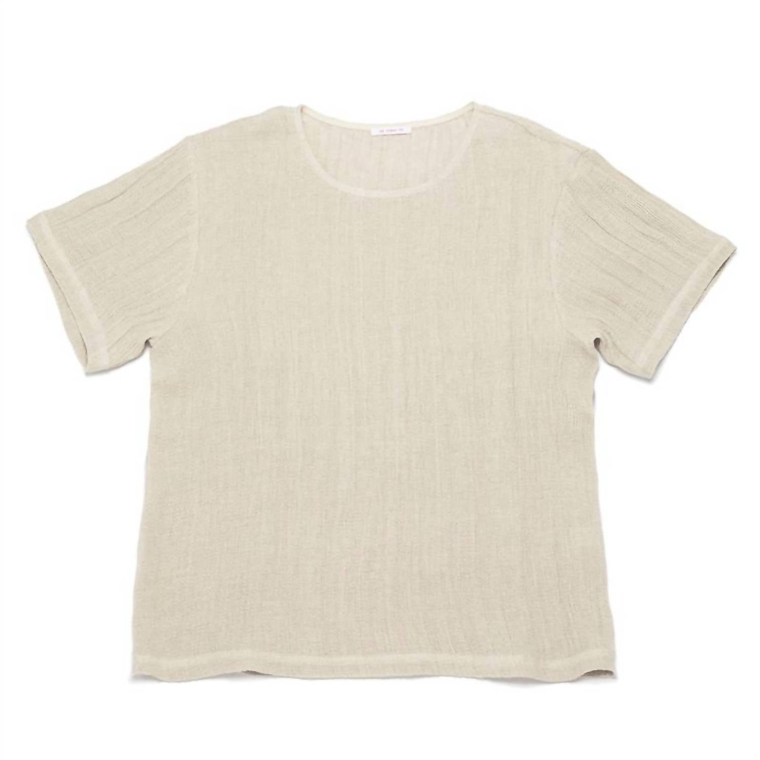 Introducing the Men's Linen T-shirt by s.k. manor hill, a staple for your summer wardrobe in natural with a textured design. This short sleeve tee is crafted from 100% linen, ensuring breathability and comfort. Made in the New York Garment District, it features a crewneck and an oversized fit for a relaxed look. Closure: Pull on. Care instructions: Hand wash.